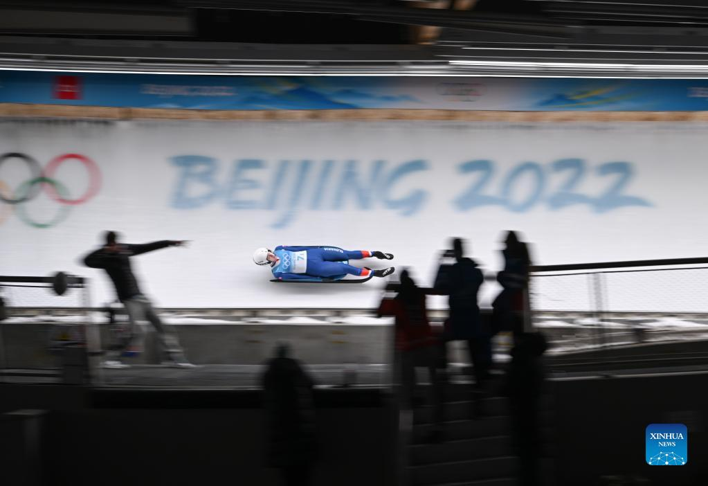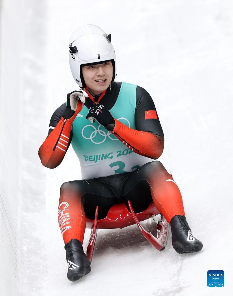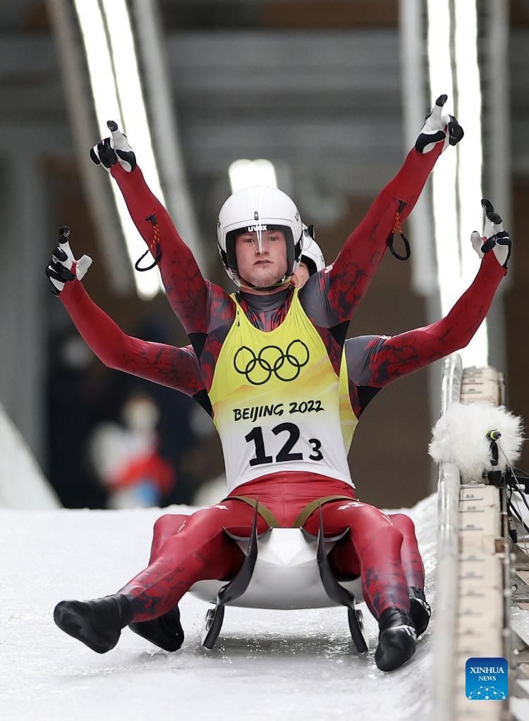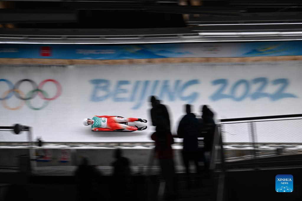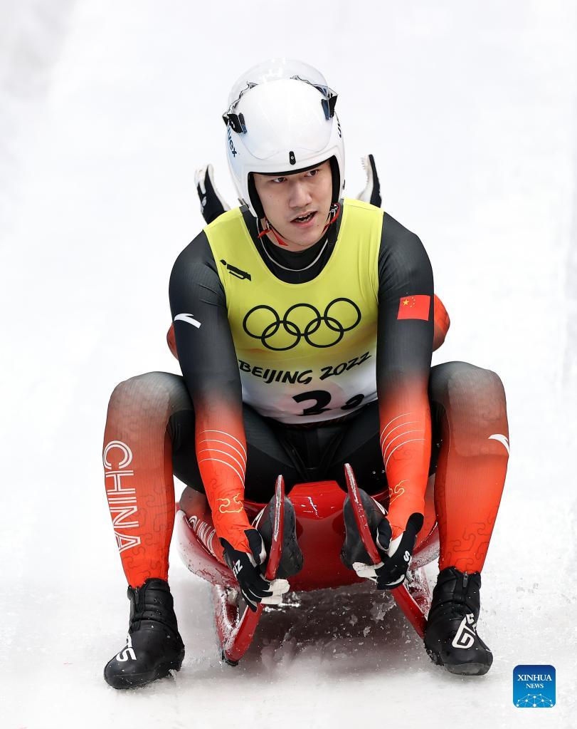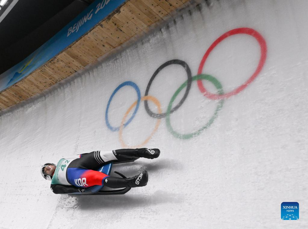 Lim Namkyu of South Korea competes during the luge team relay competition at the Yanqing National Sliding Centre in Yanqing district of Beijing, capital of China, Feb. 10, 2022. (Xinhua/Sun Fei)