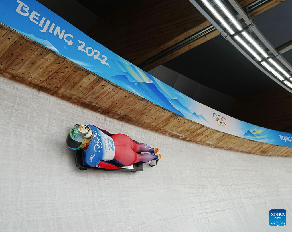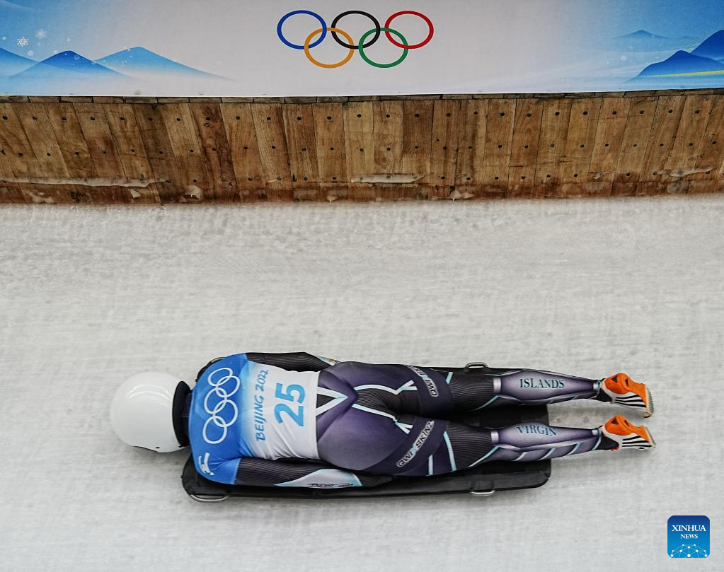 Katie Tannenbaum of Virgin Islands competes during the skeleton women heat of Beijing 2022 Winter Olympics at National Sliding Centre in Yanqing District, Beijing, capital of China, Feb. 11, 2022. (Xinhua/Sun Fei)