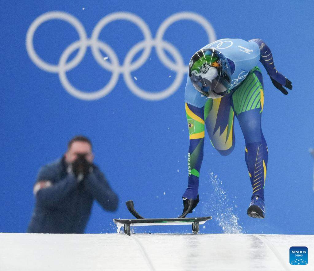 Nicole Rocha Silveira of Brazil competes during the skeleton women heat of Beijing 2022 Winter Olympics at National Sliding Centre in Yanqing District, Beijing, capital of China, Feb. 11, 2022. (Xinhua/Sun Fei)