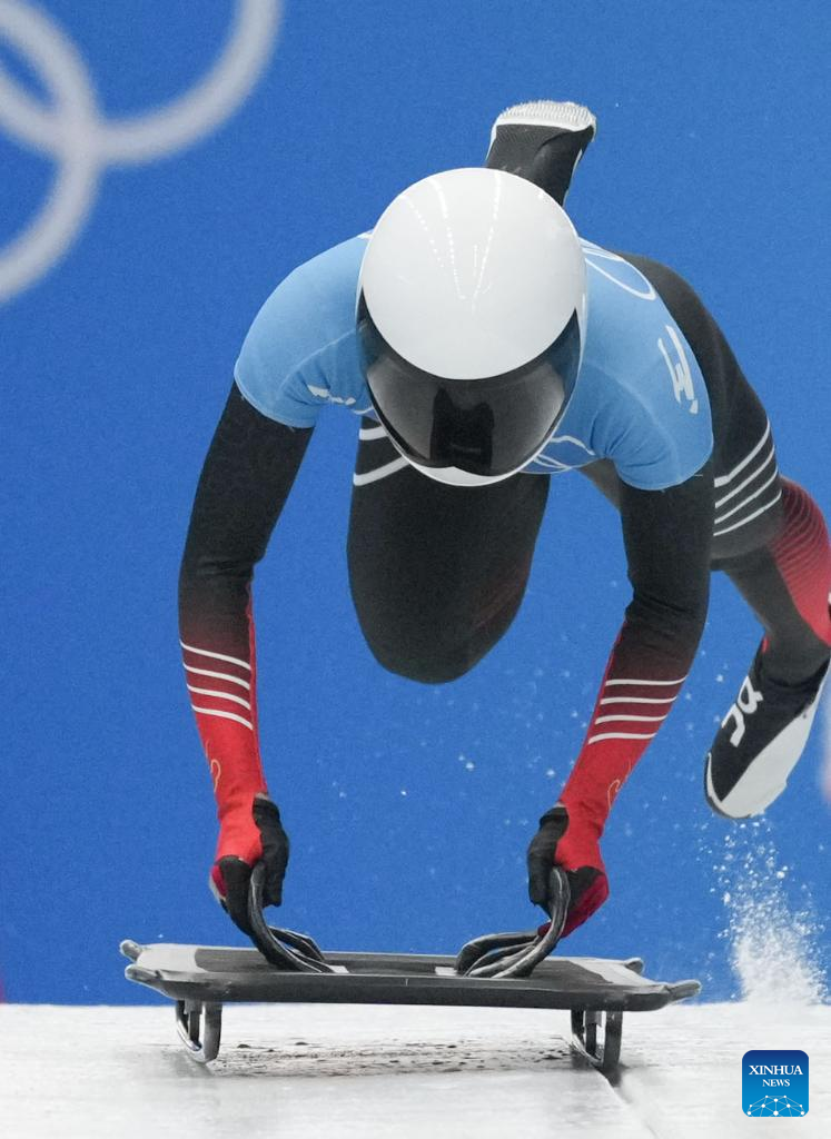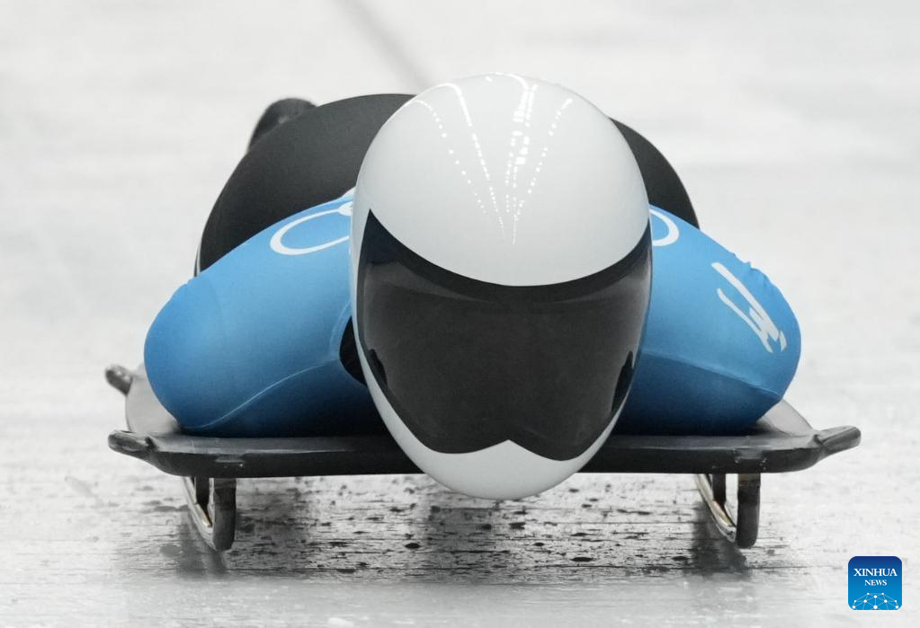 Zhao Dan of China competes during the skeleton women heat of Beijing 2022 Winter Olympics at National Sliding Centre in Yanqing District, Beijing, capital of China, Feb. 11, 2022. (Xinhua/Sun Fei)