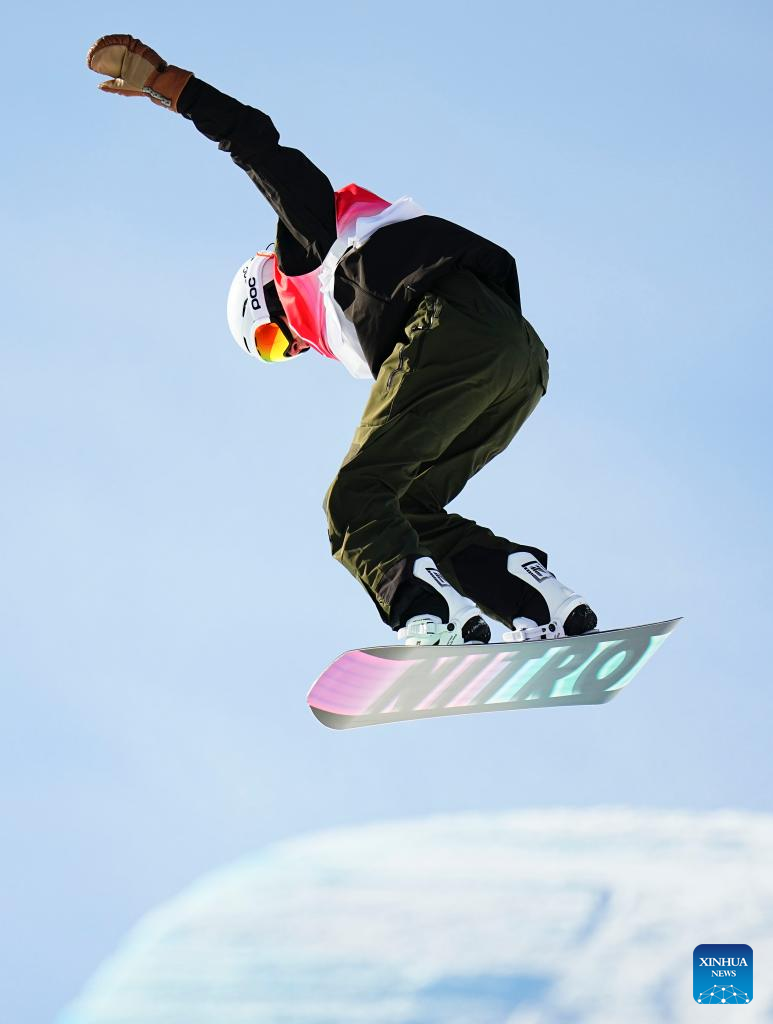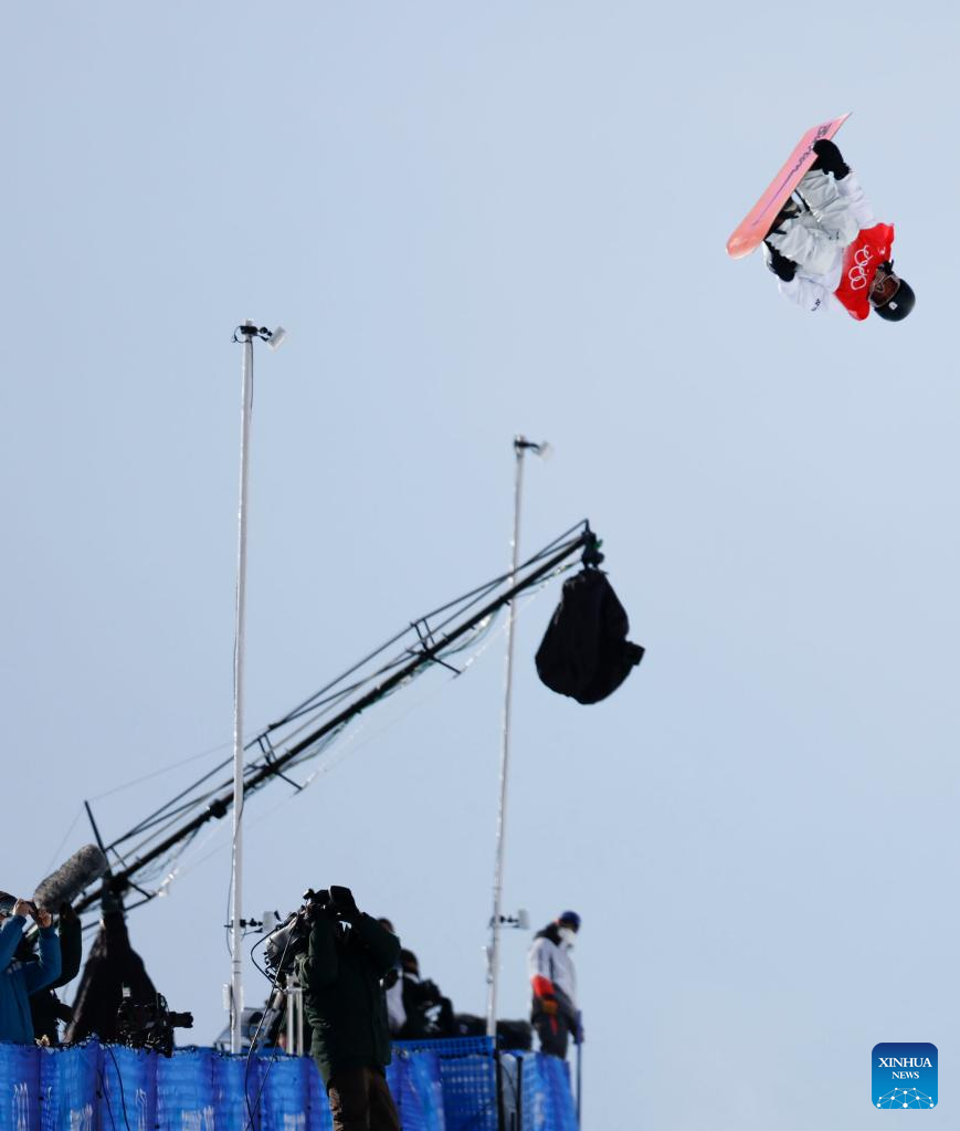 Jan Scherrer of Switzerland competes during men's snowboard halfpipe final of Beijing 2022 Winter Olympics at Genting Snow Park in Zhangjiakou, north China's Hebei Province, Feb. 11, 2022. (Xinhua/Xu Chang)