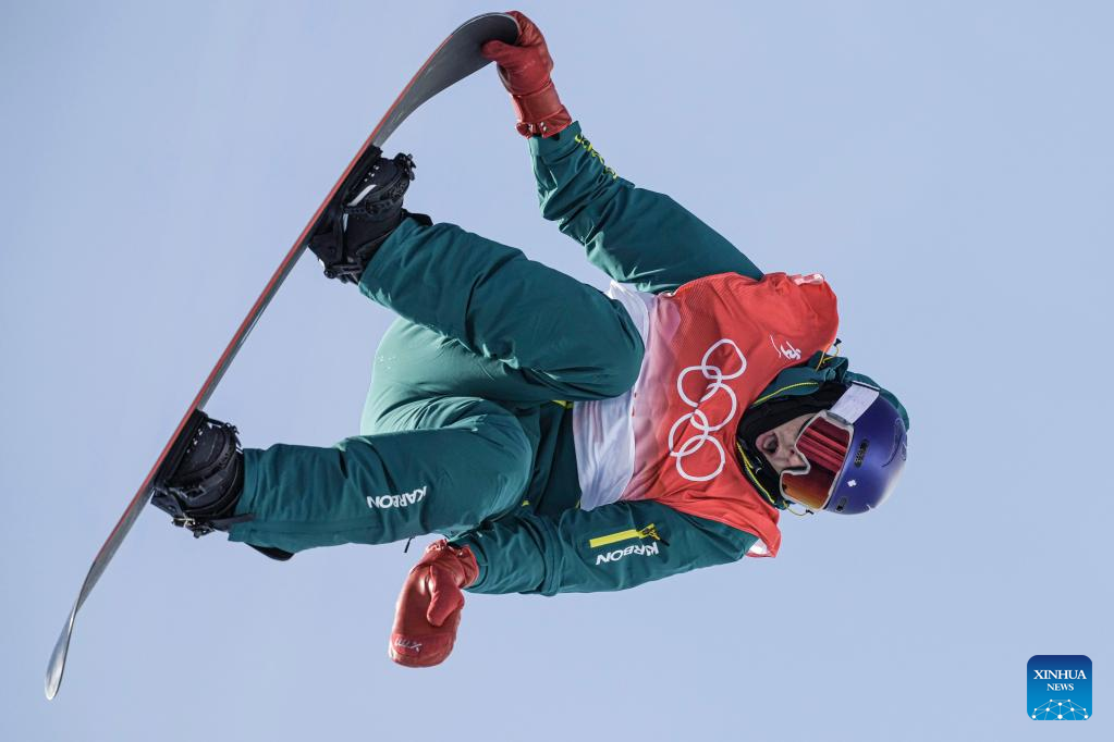 Scotty James of Australia competes during men's snowboard halfpipe final of Beijing 2022 Winter Olympics at Genting Snow Park in Zhangjiakou, north China's Hebei Province, Feb. 11, 2022. (Xinhua/Wu Zhuang)