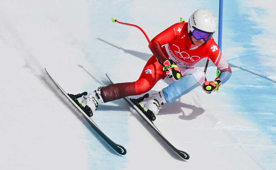 Lara Gut-Behrami of Switzerland competes in Alpine skiing women's Super-G of Beijing 2022 Winter Olympics in Yanqing District, Beijing, Feb. 11, 2022. (Xinhua/Lian Zhen)
