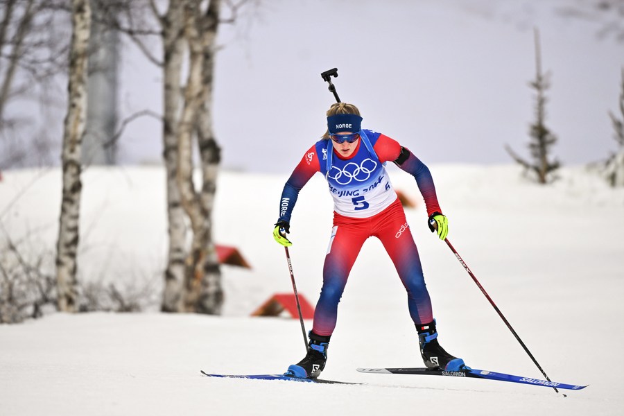 Marte Olsbu Roeiseland of Norway competes in biathlon women's 7.5km sprint in Zhangjiakou, north China's Hebei Province, Feb. 11, 2022. (Xinhua/Guo Cheng)