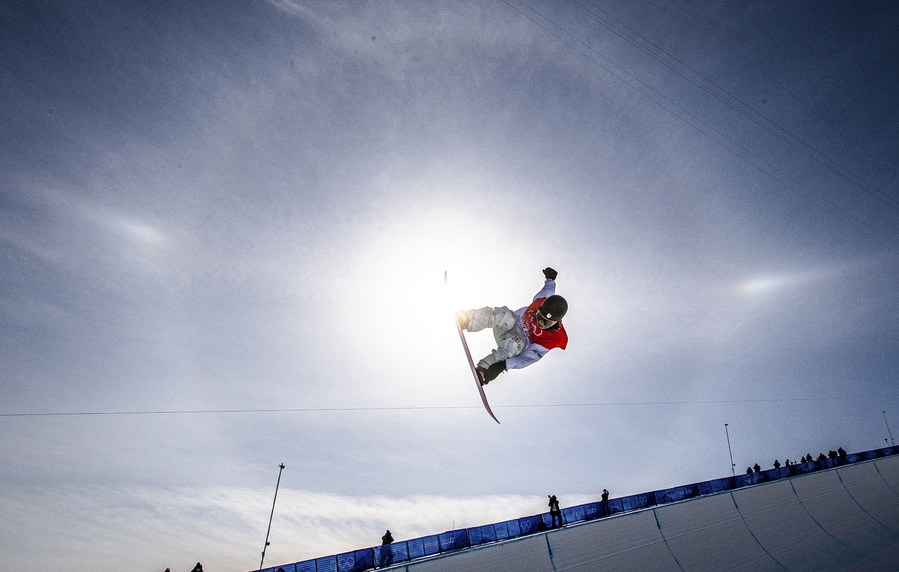 Hirano Ayumu of Japan competes in the men's snowboard halfpipe final at Genting Snow Park in Zhangjiakou, north China's Hebei Province, Feb. 11, 2022. (Xinhua/Xiao Yijiu)