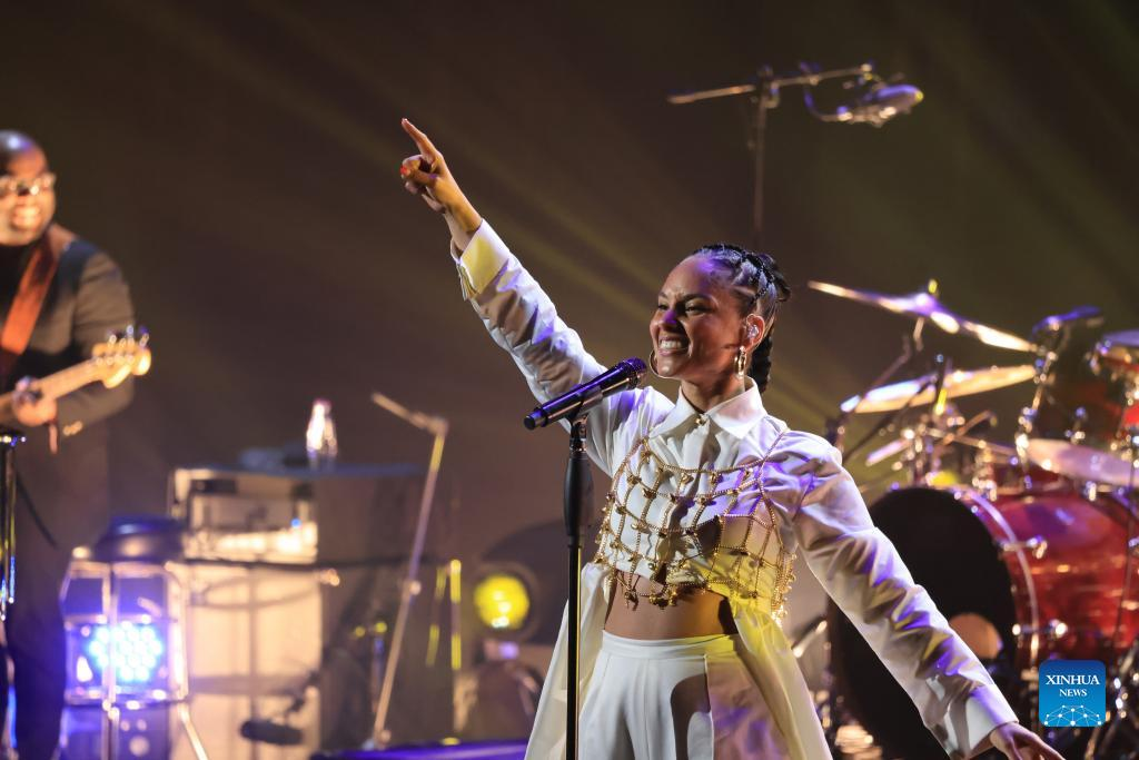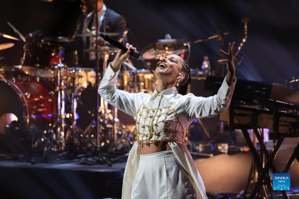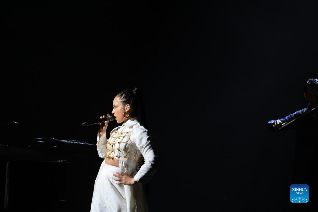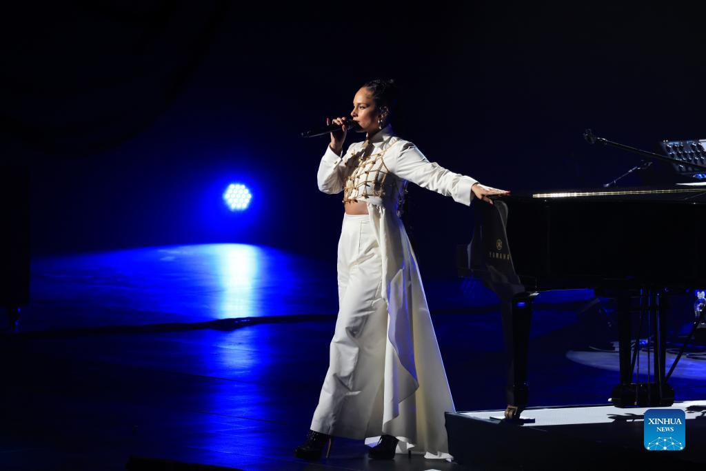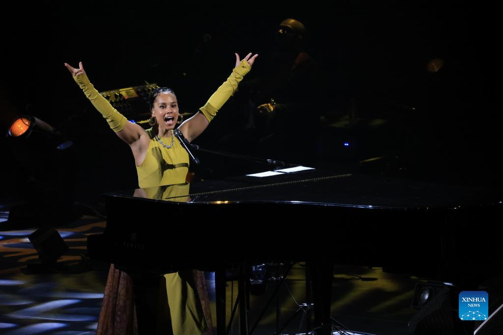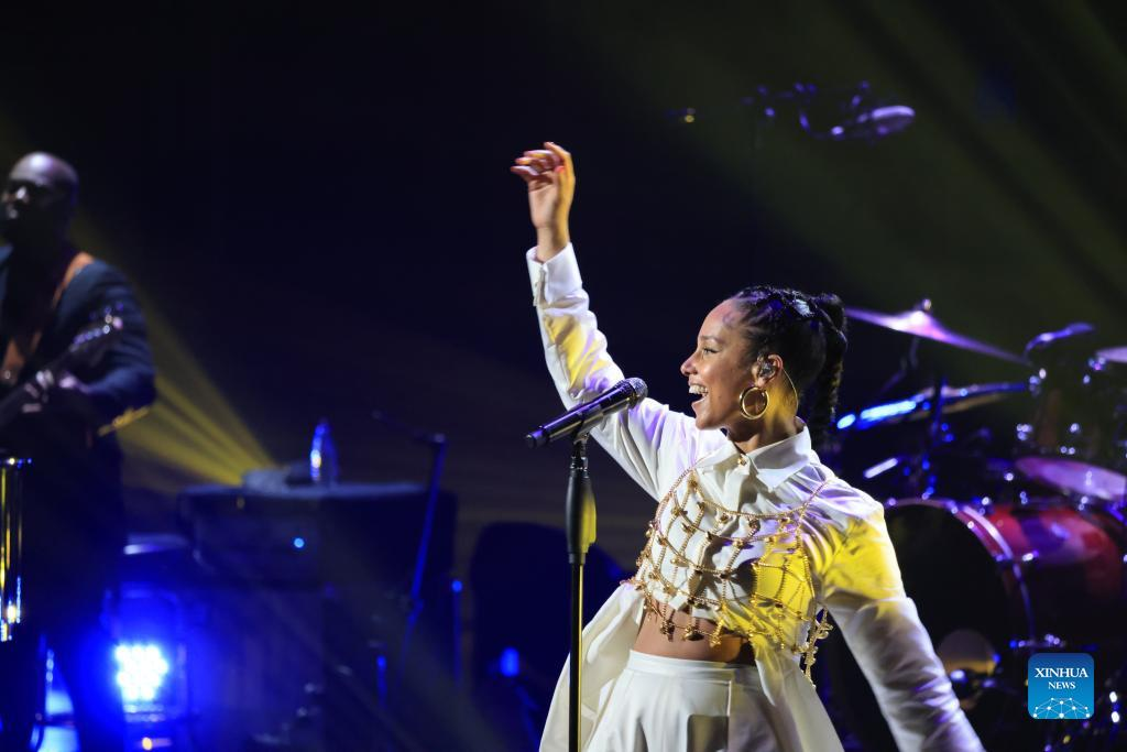 Alicia Keys performs during the "One Night Only" concert in AlUla, Saudi Arabia, Feb. 11, 2022. (Xinhua/Wang Haizhou)