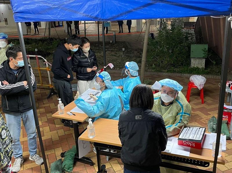 Residents of Hung Lok House, Hung Fuk Estate in Yuen Long are being arranged for COVID-19 testing, Feb 11, 2022. [Photo/HKSAR Government]