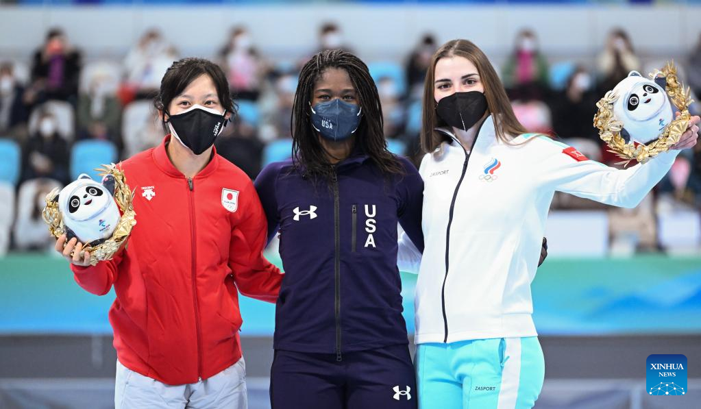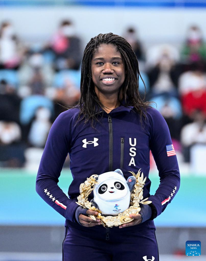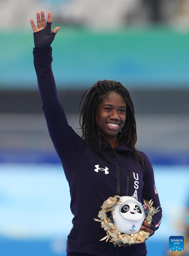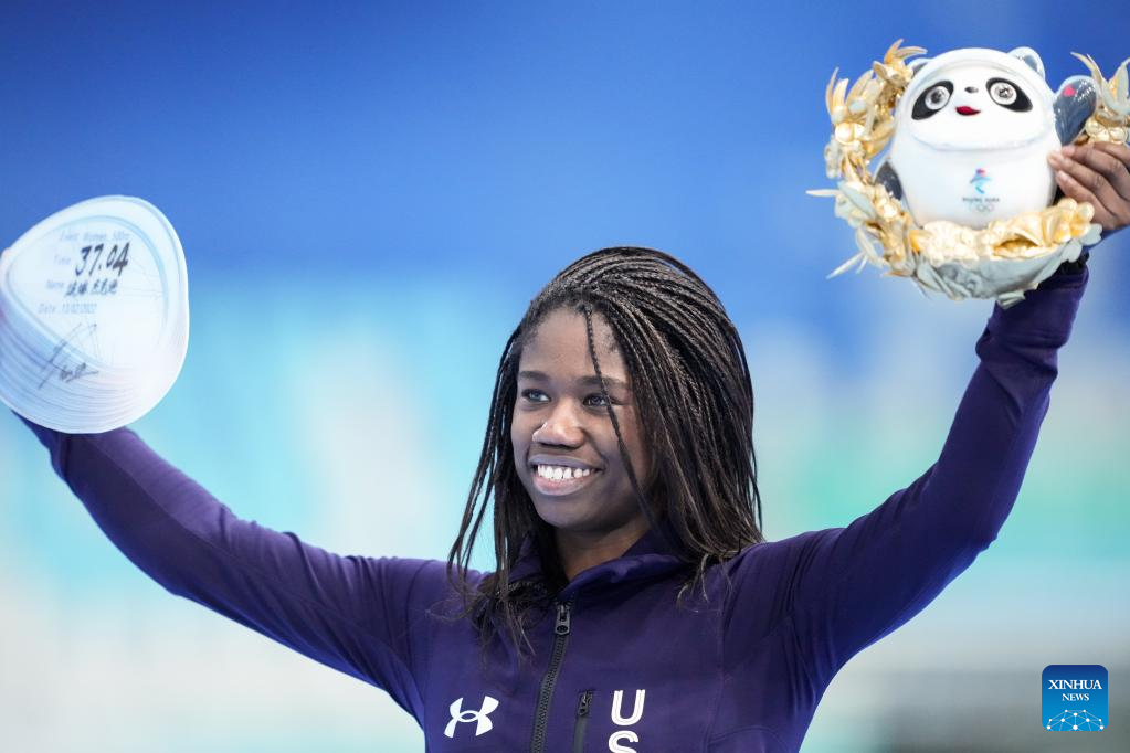 BEIJING, Feb. 13 (Xinhua) -- Erin Jackson of the United States notched the gold medal in the women's 500m speed skating at the Beijing Winter Olympics here on Sunday.