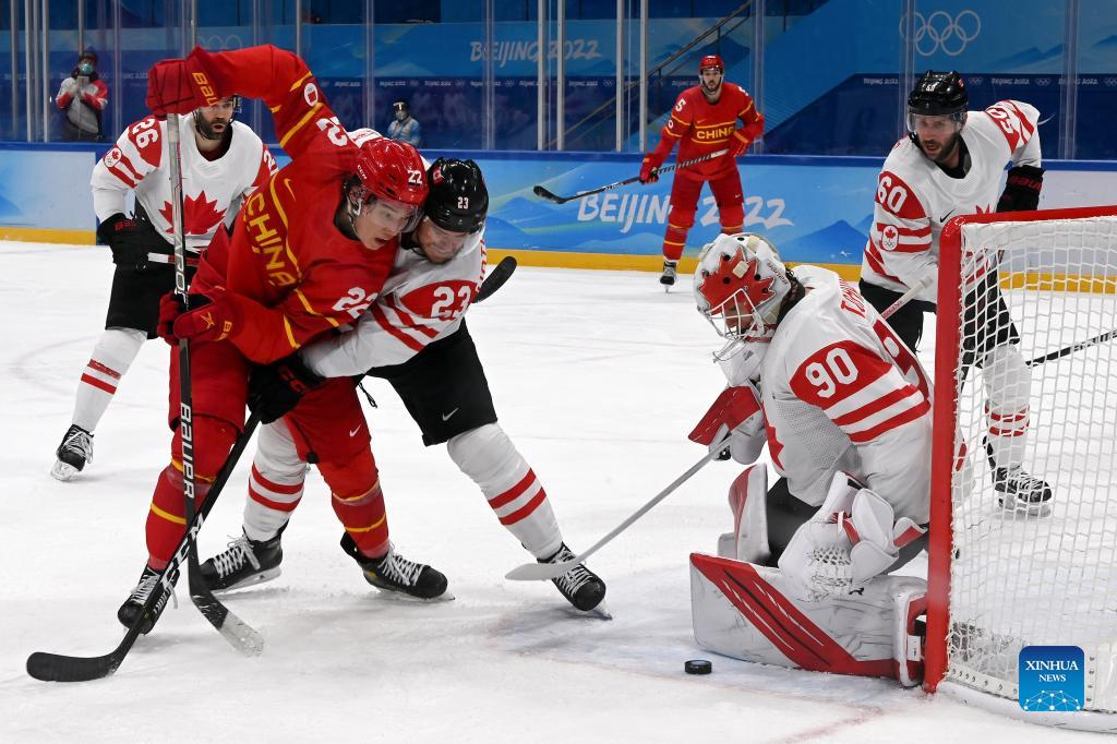 BEIJING, Feb. 13 (Xinhua) -- Canada defeated China 5-0 while Finland scored in overtime to beat Sweden 4-3 in the men's ice hockey at the Beijing Winter Olympics on Sunday.