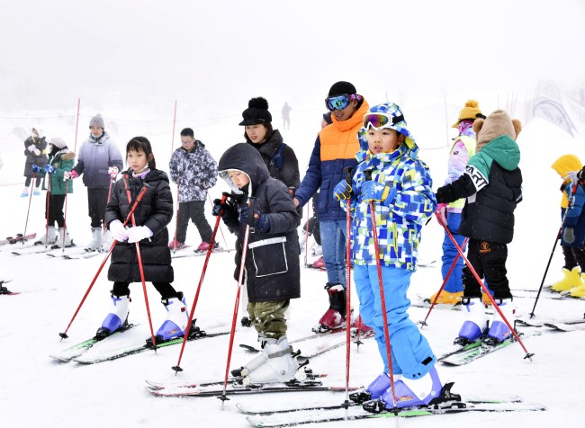 Children learn skiing during their winter camp in Guangyuan, Southwest China's Sichuan province. [Photo provided by Guangyuan city]