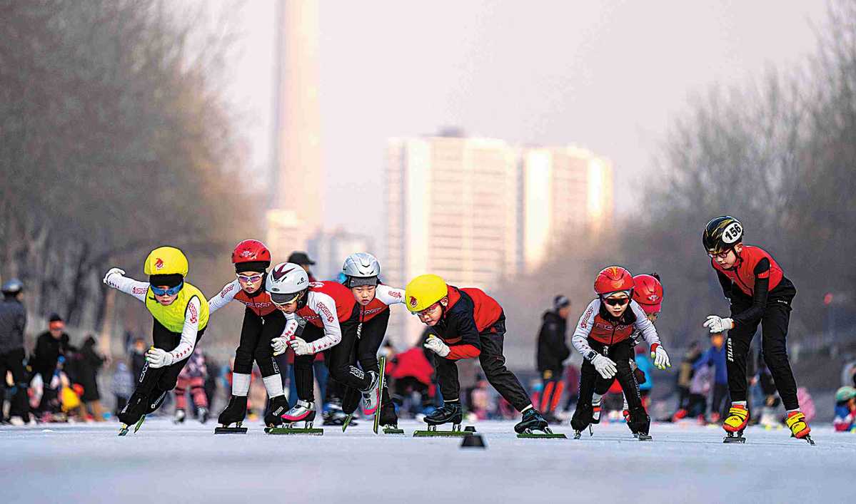 Young sports enthusiasts in Beijing skate outdoors. YUAN CHEN/FOR CHINA DAILY
