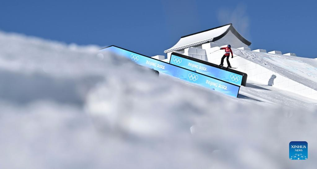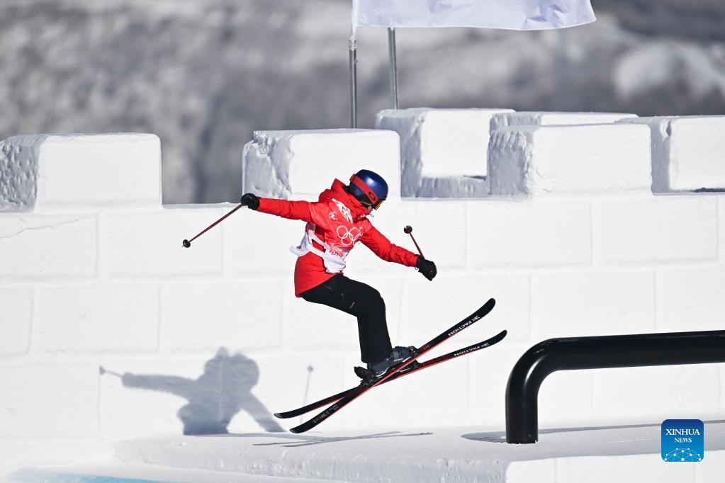 Gu Ailing of China competes during women's freeski slopestyle qualification of Beijing 2022 Winter Olympics at Genting Snow Park in Zhangjiakou, north China's Hebei Province, Feb. 14, 2021. (Xinhua/Xiao Yijiu)