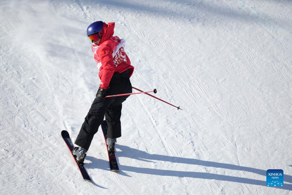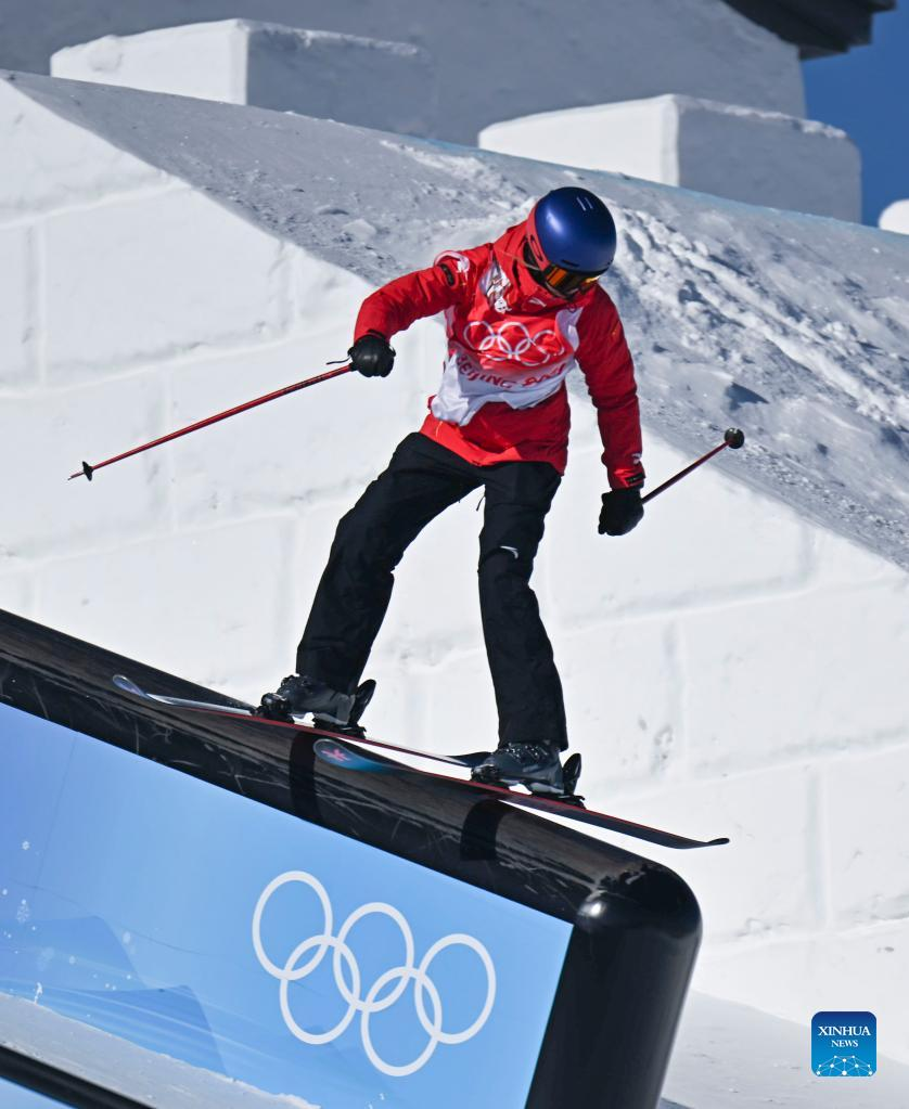 Gu Ailing of China competes during women's freeski slopestyle qualification of Beijing 2022 Winter Olympics at Genting Snow Park in Zhangjiakou, north China's Hebei Province, Feb. 14, 2021. (Xinhua/Xue Yubin)