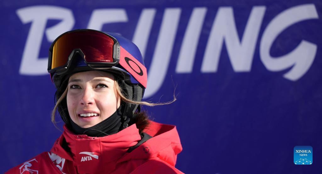 Gu Ailing of China reacts during women's freeski slopestyle qualification of Beijing 2022 Winter Olympics at Genting Snow Park in Zhangjiakou, north China's Hebei Province, Feb. 14, 2021. (Xinhua/Xue Yubin)