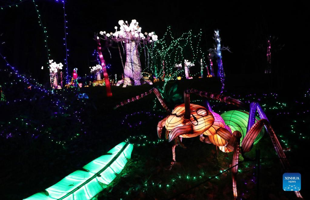 Illuminated sculptures are on display during a light festival at Thoiry zoo near Paris, France, Feb. 13, 2022. The festival runs till March 6, 2022. (Xinhua/Gao Jing)
