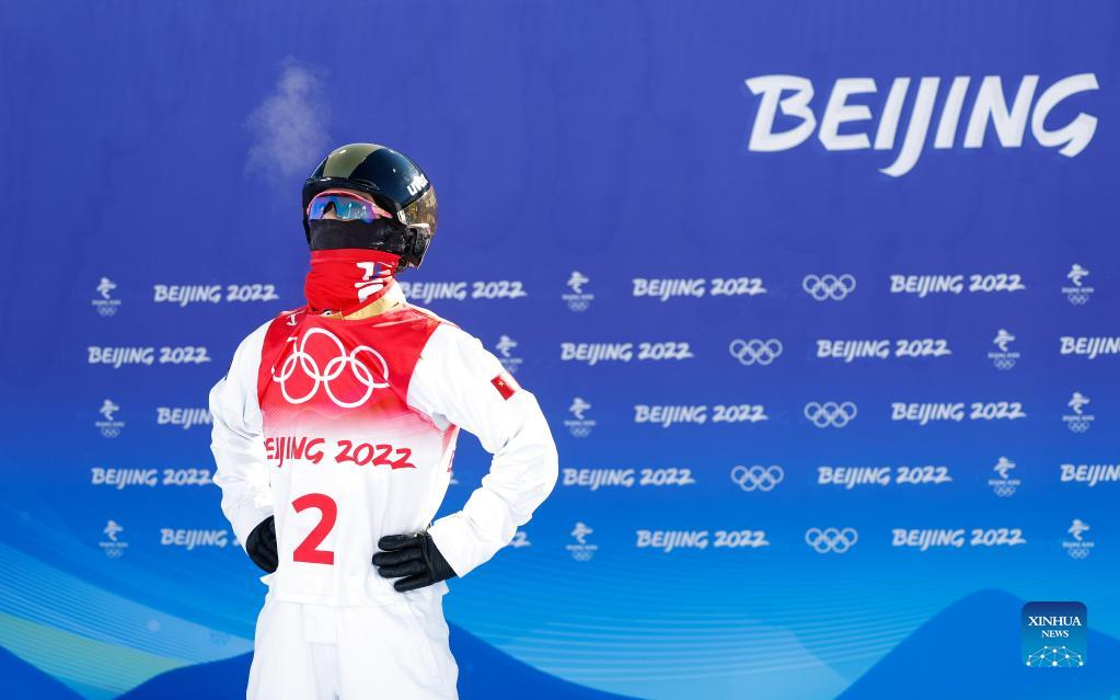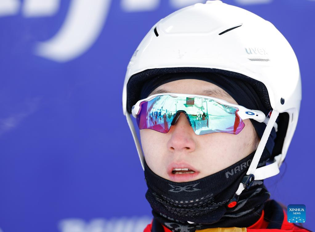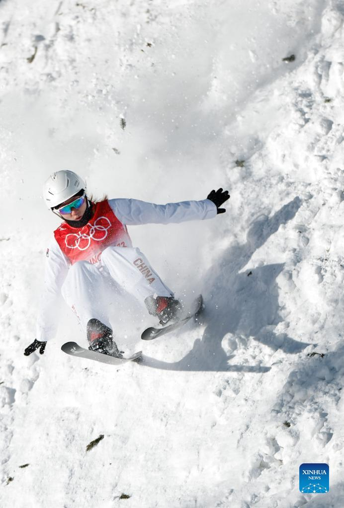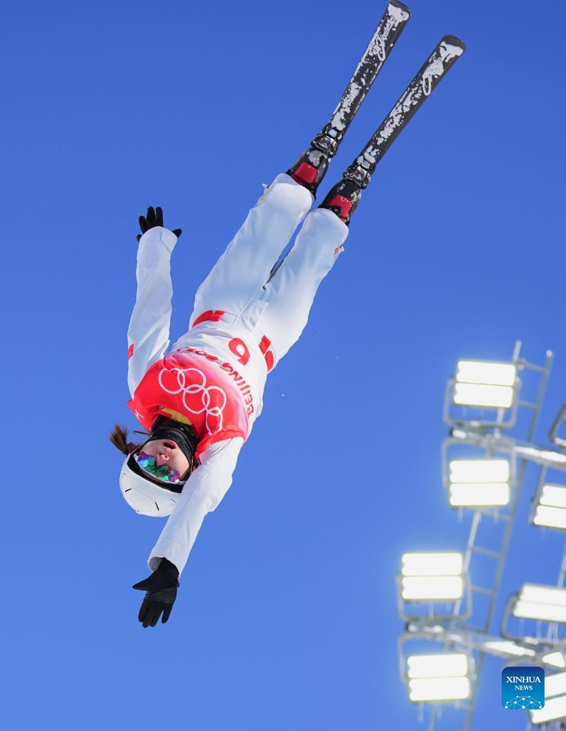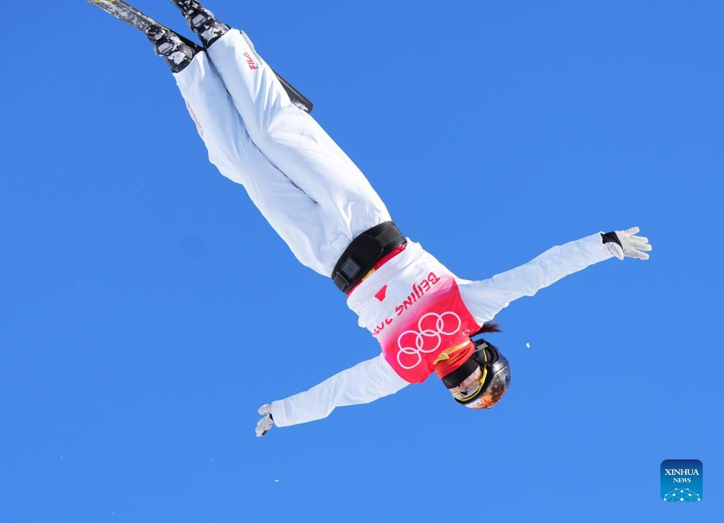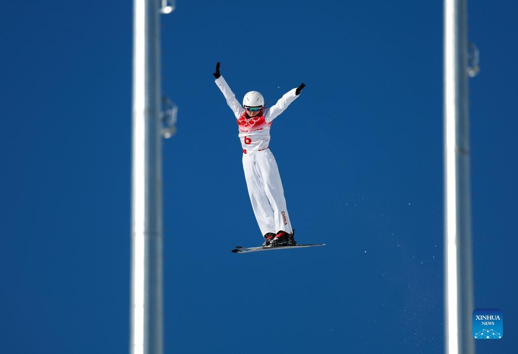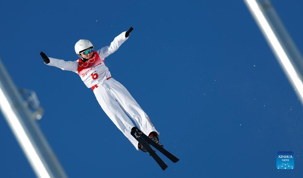 Xu Mengtao of China competes during the freestyle skiing women's aerials qualification of Beijing 2022 Winter Olympics at Genting Snow Park in Zhangjiakou, north China's Hebei Province, Feb. 14, 2022. (Xinhua/Yang Shiyao)