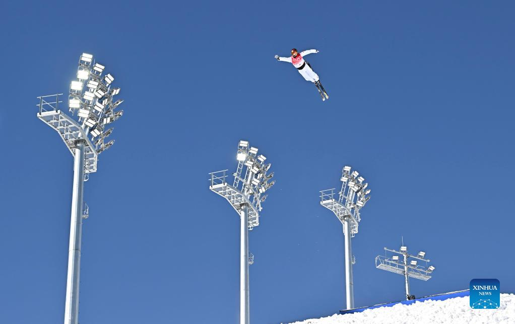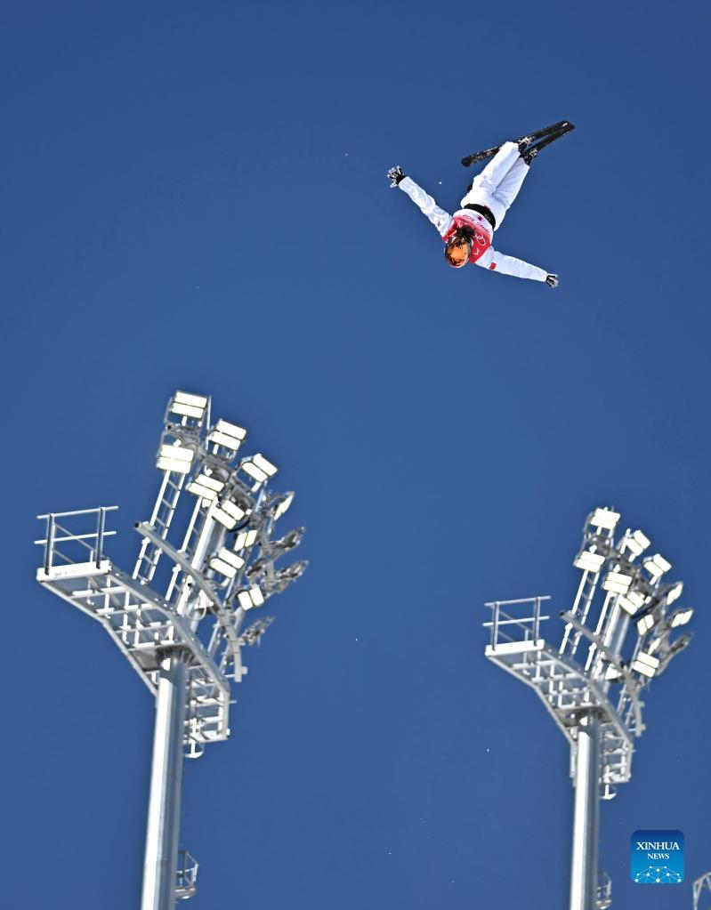 Xu Mengtao of China competes during the freestyle skiing women's aerials qualification of Beijing 2022 Winter Olympics at Genting Snow Park in Zhangjiakou, north China's Hebei Province, Feb. 14, 2022. (Xinhua/Xiao Yijiu)