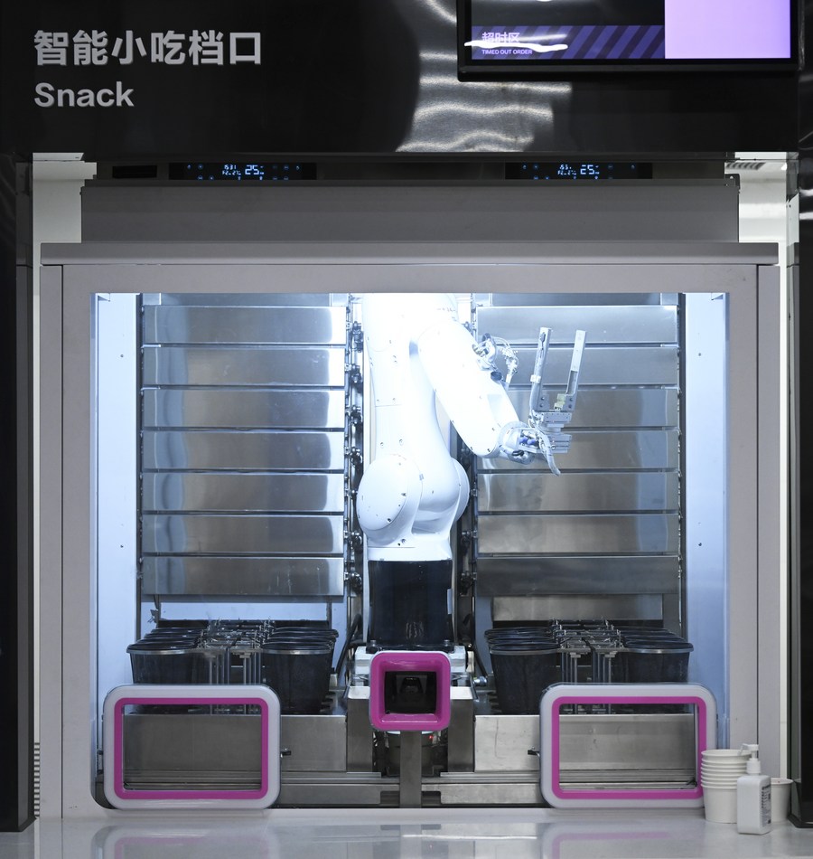 "We have more than 10 smart catering equipment including the automatic fried wok, the sky track, burger machine as well as the bartender," Zhong Zhanpeng, project supervisor of MMC Smart Restaurant said in an interview with Xinhua.