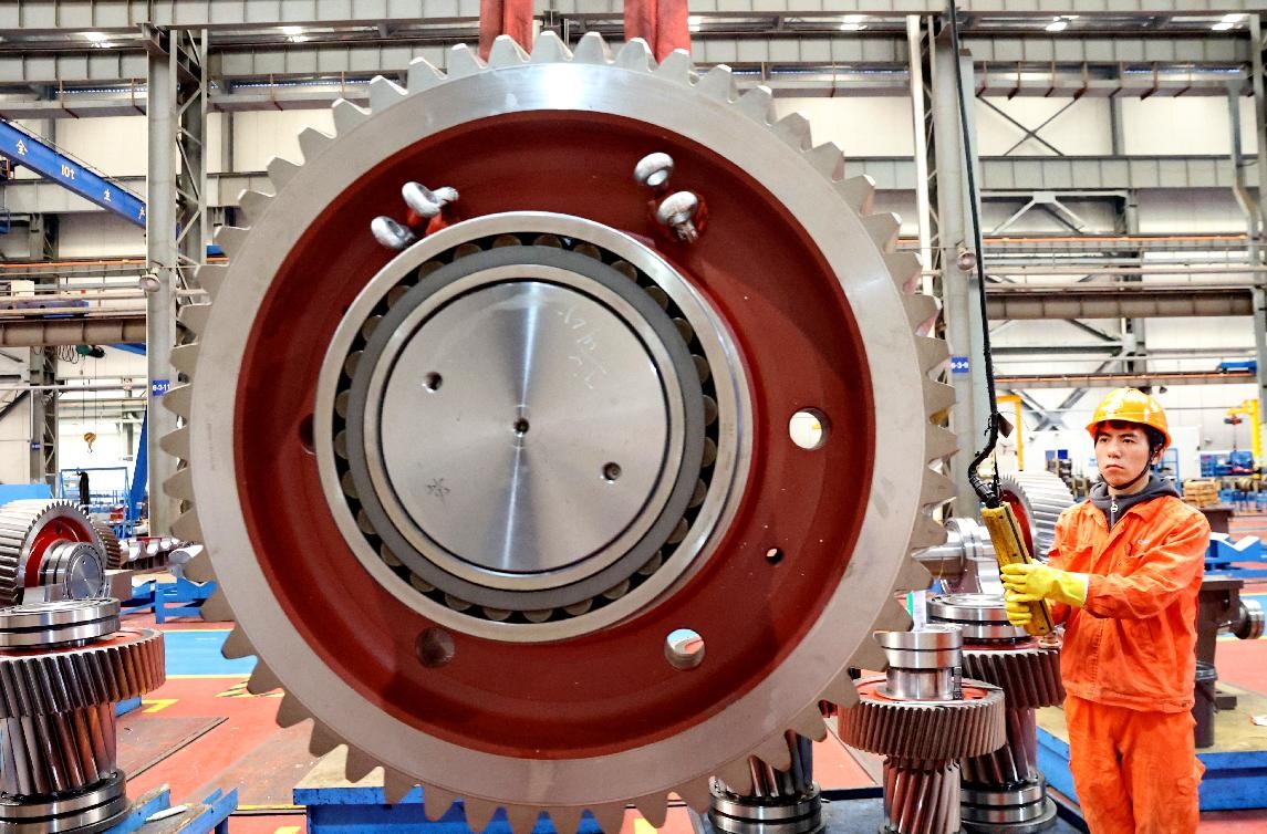 A worker is busy making container crane parts and components to be exported to countries participating in the Belt and Road Initiative at a factory of Shanghai Zhenhua Heavy Industries Company Limited (ZPMC) in Nantong, east China’s Jiangsu province, Jan. 8, 2022. (People’s Daily Online/Xu Congjun)