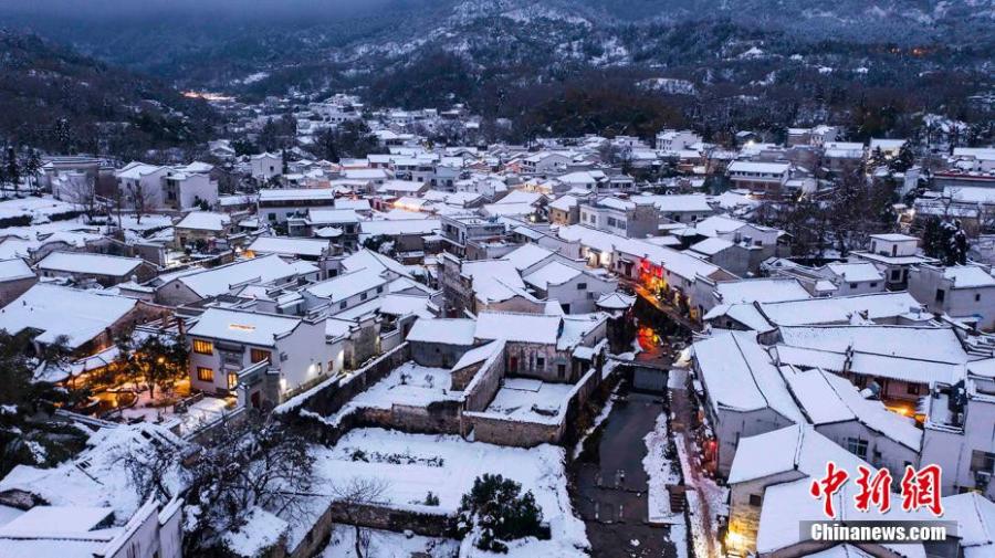 Snow-capped ancient village looks like a fairy tale in Jing Village, east China's Anhui Province, Feb. 12, 2022. (Photo: China News Service/Li Xiaohong)