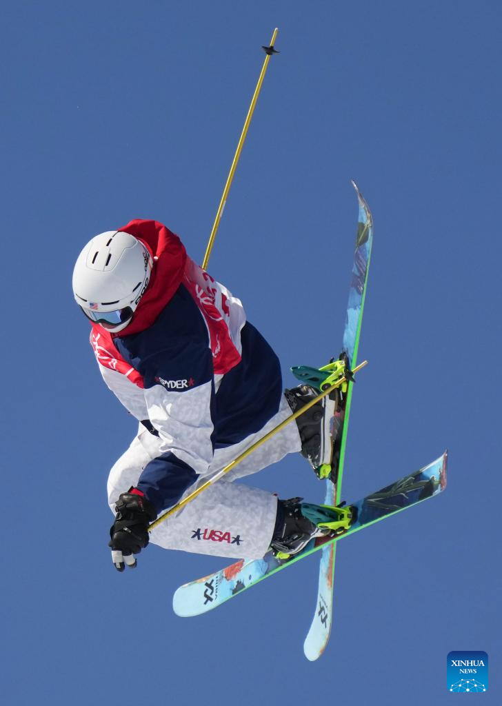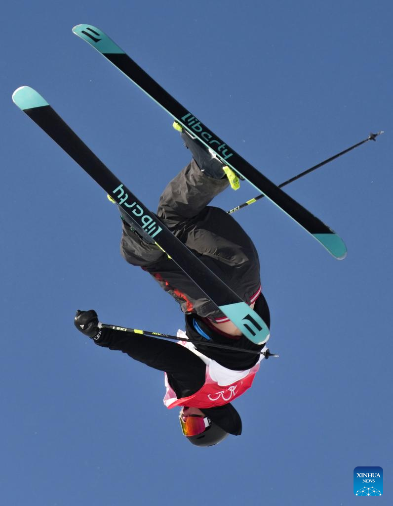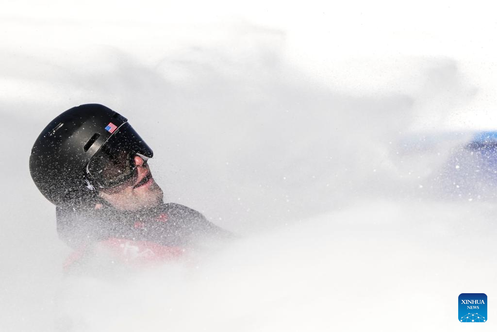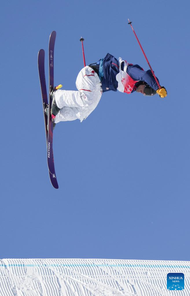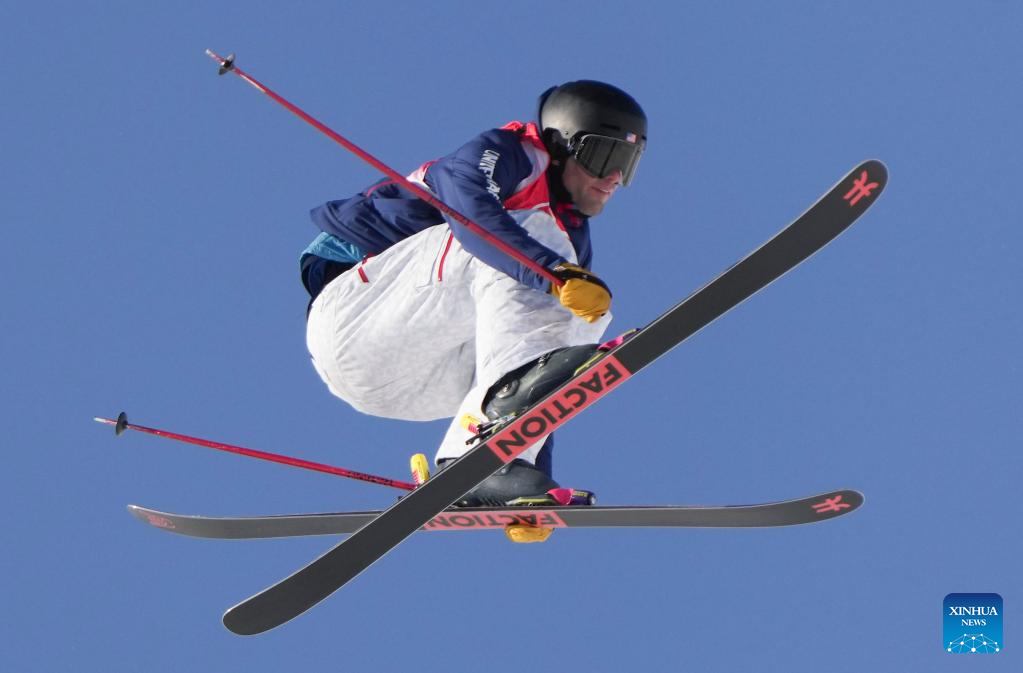 Alexander Hall of the United States competes during the freestyle skiing men's freeski slopestyle final of Beijing 2022 Winter Olympics at Genting Snow Park in Zhangjiakou, north China's Hebei Province, Feb. 16, 2022. (Xinhua/Wang Haofei)
