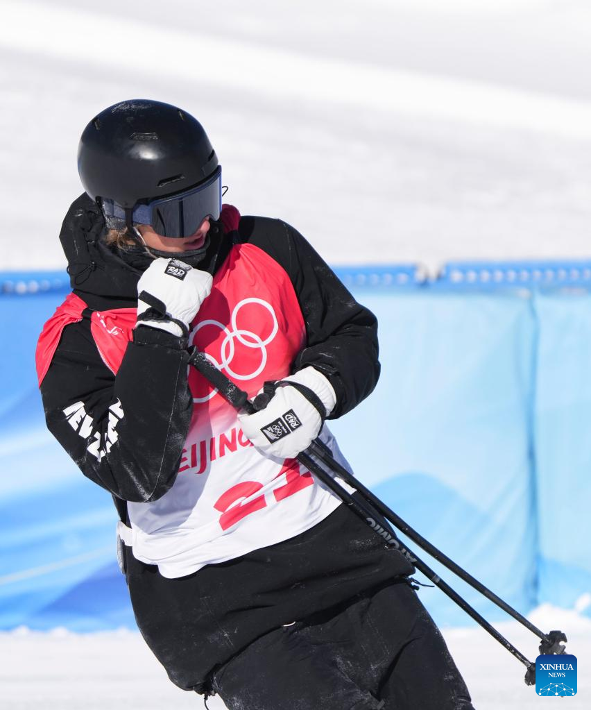 Ben Barclay of New Zealand reacts during the freestyle skiing men's freeski slopestyle final of Beijing 2022 Winter Olympics at Genting Snow Park in Zhangjiakou, north China's Hebei Province, Feb. 16, 2022. (Xinhua/Wang Haofei)