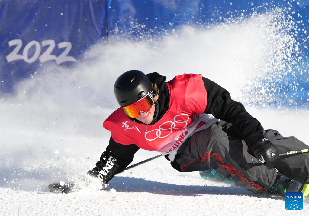 Max Moffatt of Canada competes during the freestyle skiing men's freeski slopestyle final of Beijing 2022 Winter Olympics at Genting Snow Park in Zhangjiakou, north China's Hebei Province, Feb. 16, 2022. (Xinhua/Wang Haofei)