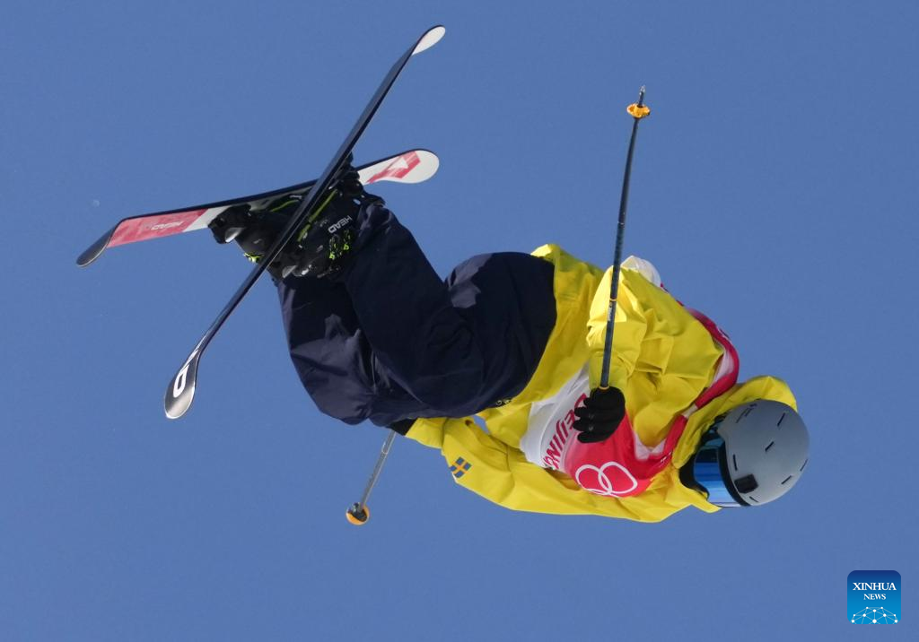 Jesper Tjader of Sweden competes during the freestyle skiing men's freeski slopestyle final of Beijing 2022 Winter Olympics at Genting Snow Park in Zhangjiakou, north China's Hebei Province, Feb. 16, 2022. (Xinhua/Wang Haofei)