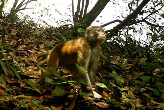 Photo shows a macaca, a national second-level protected wild animal. (Photo courtesy of Huping Mountain National Nature Reserve)