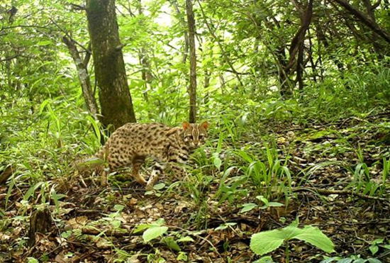 Photo shows a leopard cat, a national second-level protected wild animal. (Photo courtesy of Huping Mountain National Nature Reserve)