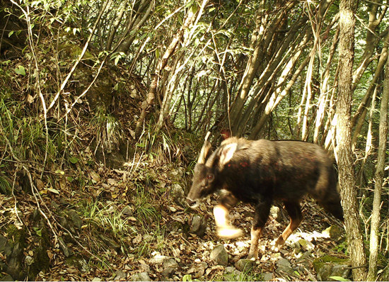 Photo shows a Chinese serow, a national second-level protected wild animal. (Photo courtesy of Huping Mountain National Nature Reserve)