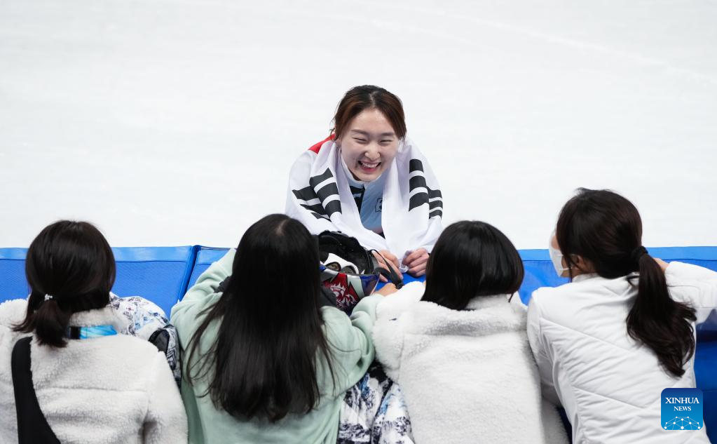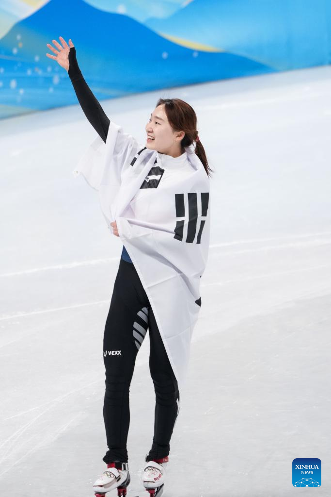 BEIJING, Feb. 16 (Xinhua) -- Defending champion Choi Min-jeong of South Korea won the women's 1,500 meter short track speed skating gold medal in two minutes and 17.789 seconds here on Wednesday at the Beijing Olympic Winter Games.