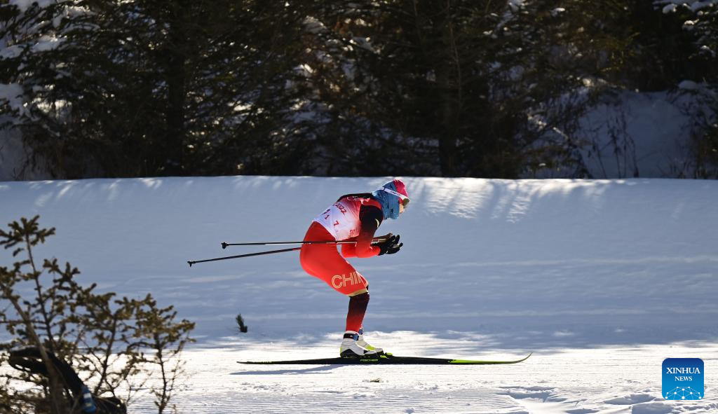 Chi Chunxue of China competes during the cross-country skiing women's team sprint classic semifinals of the Beijing Winter Olympics at National Cross-Country Skiing Centre in Zhangjiakou, north China's Hebei Province, Feb. 16, 2022. (Xinhua/Zhang Hongxiang)