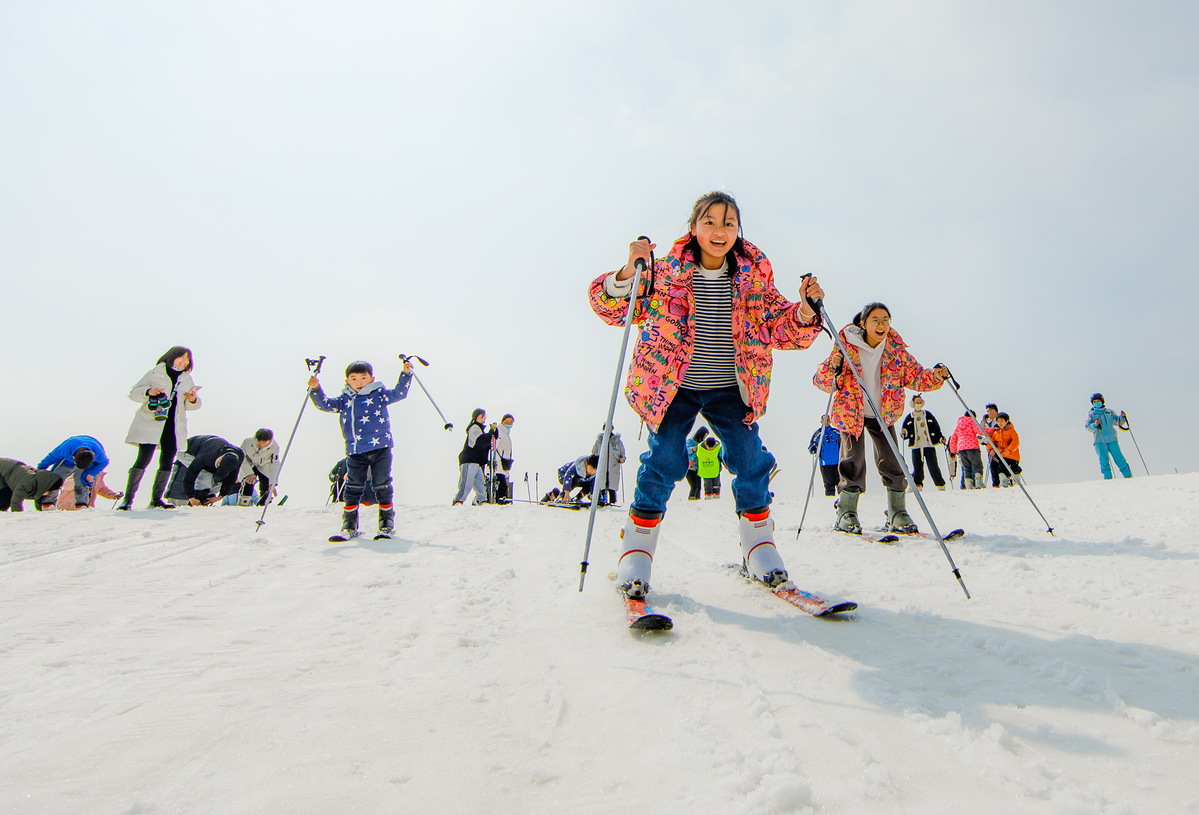 Tourists ski at a winter sports park in Tengzhou, Shandong province. SONG HAICUN/FOR CHINA DAILY