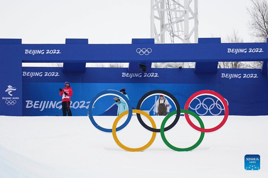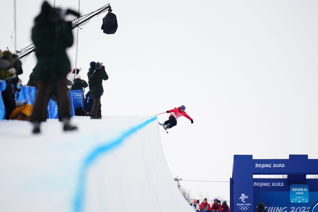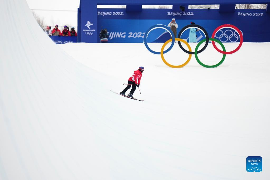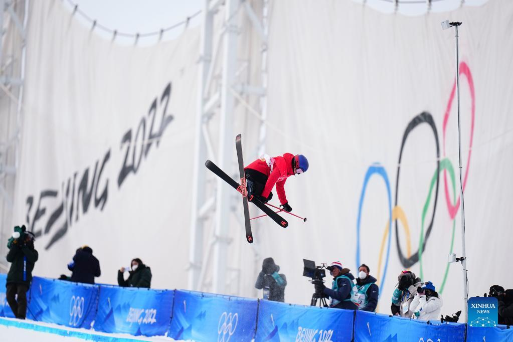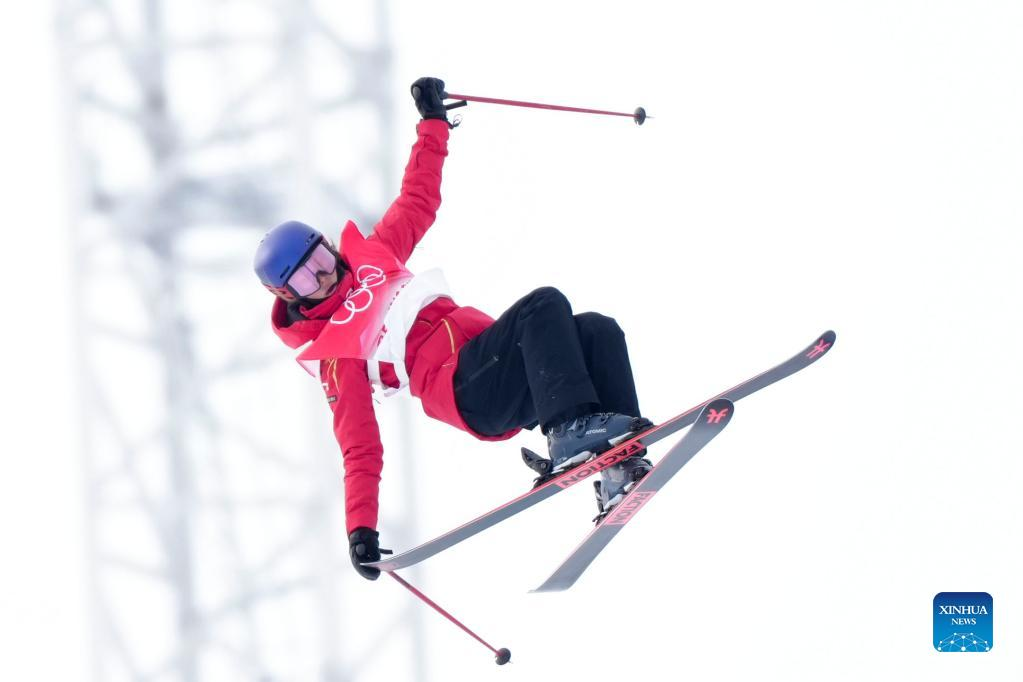 Wu Meng of China competes during the freestyle skiing women's freeski halfpipe qualification of Beijing 2022 Winter Olympics at Genting Snow Park in Zhangjiakou, north China's Hebei Province, Feb. 17, 2022. (Xinhua/Xue Yubin)