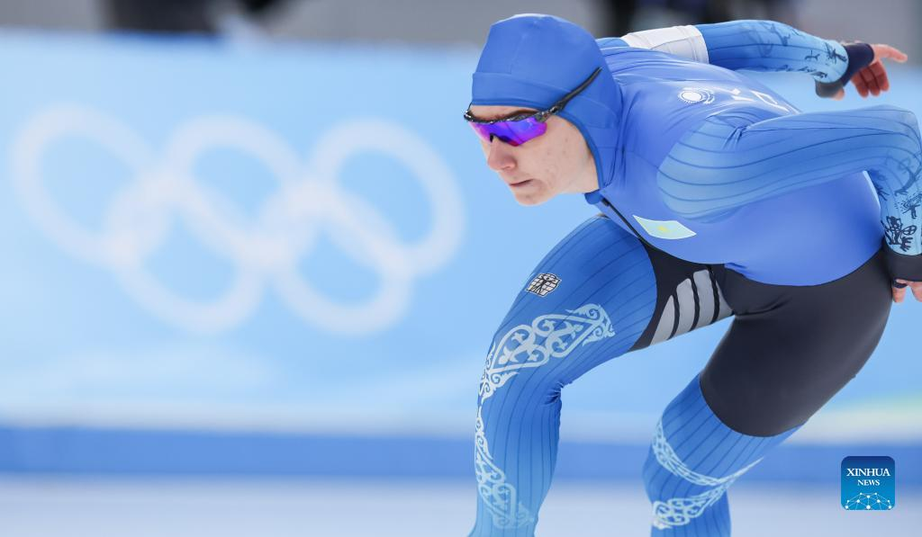 Nadezhda Morozova of Kazakhstan competes duing the speed skating women's 1000m at the National Speed Skating Oval in Beijing, capital of China, Feb. 17, 2022. (Xinhua/Cheng Tingting)