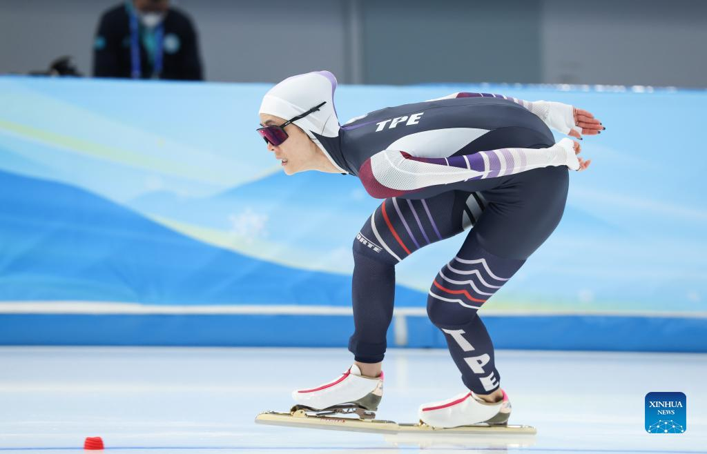 Huang Yu Ting of Chinese Taipei competes duing the speed skating women's 1000m at the National Speed Skating Oval in Beijing, capital of China, Feb. 17, 2022. (Xinhua/Cheng Tingting)