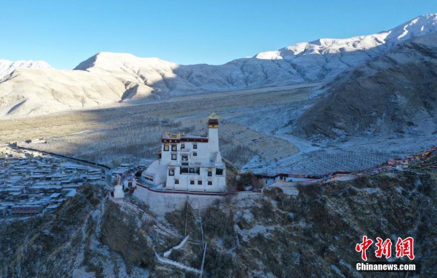 An aerial view of the ancient palace Yumbu Lakhang in Shannan City, southwest China's Tibet Autonomous Region. Yumbu Lakhang was built atop a small hill in the 2nd century BC and believed to be the oldest palace in Tibet. The palace was named after the shape of the mountain it was built on and listed as a regional-level cultural relic in Tibet in 1962. (Photo/China News Serive)