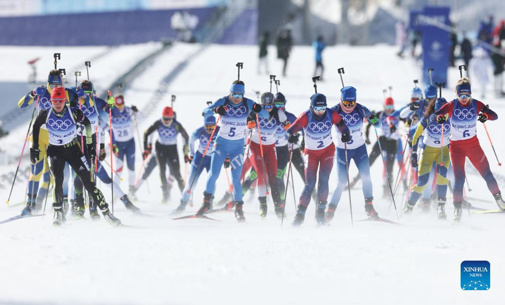 Athletes compete during biathlon women's 12.5km mass start of Beijing 2022 Winter Olympics at National Biathlon Centre in Zhangjiakou, north China's Hebei Province, Feb. 18, 2022. (Xinhua/Ding Ting)
