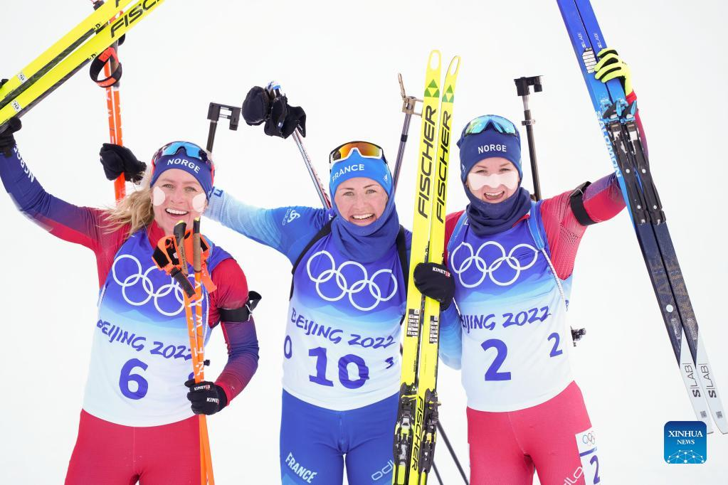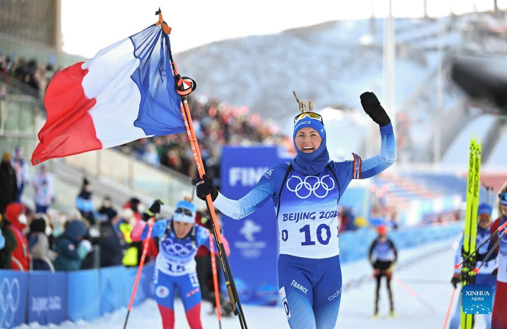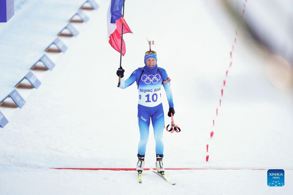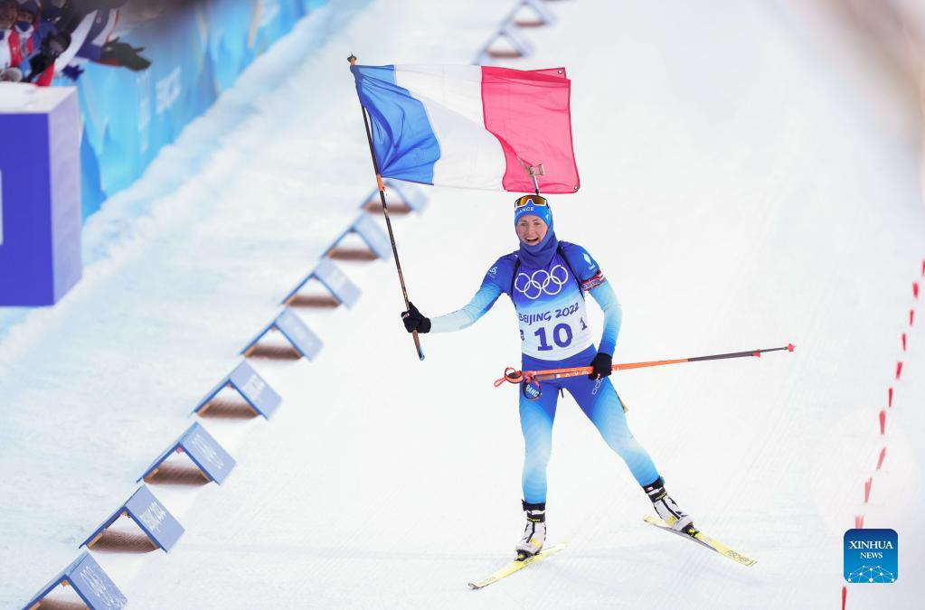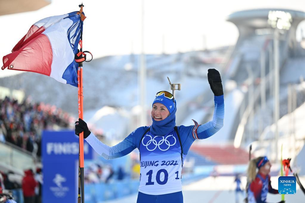 CHONGLI, Zhangjiakou, Feb. 18 (Xinhua) -- France's Justine Braisaz-Bouchet claimed her first gold medal at Beijing 2022 after winning the women's 12.5km mass start biathlon here on Friday.
