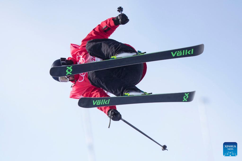 Robin Bright of Switzerland competes during the freestyle skiing men's freeski halfpipe final of Beijing 2022 Winter Olympics at Genting Snow Park in Zhangjiakou, north China's Hebei Province, Feb. 19, 2022. (Xinhua/Xue Yubin)
