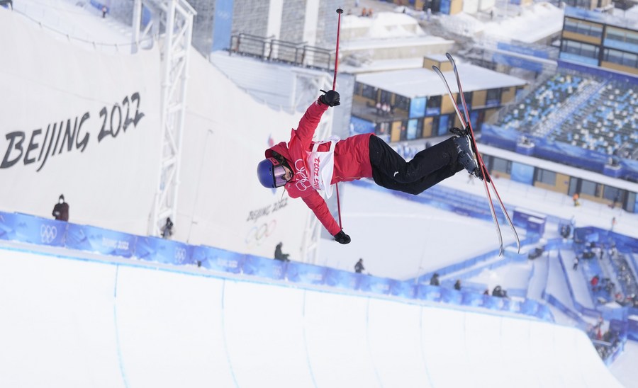 Chinese athlete Gu Ailing competes during the freestyle skiing women's freeski halfpipe final of Beijing 2022 Winter Olympics at Genting Snow Park in Zhangjiakou, north China's Hebei Province, Feb. 18, 2022. (Xinhua/Yang Shiyao)