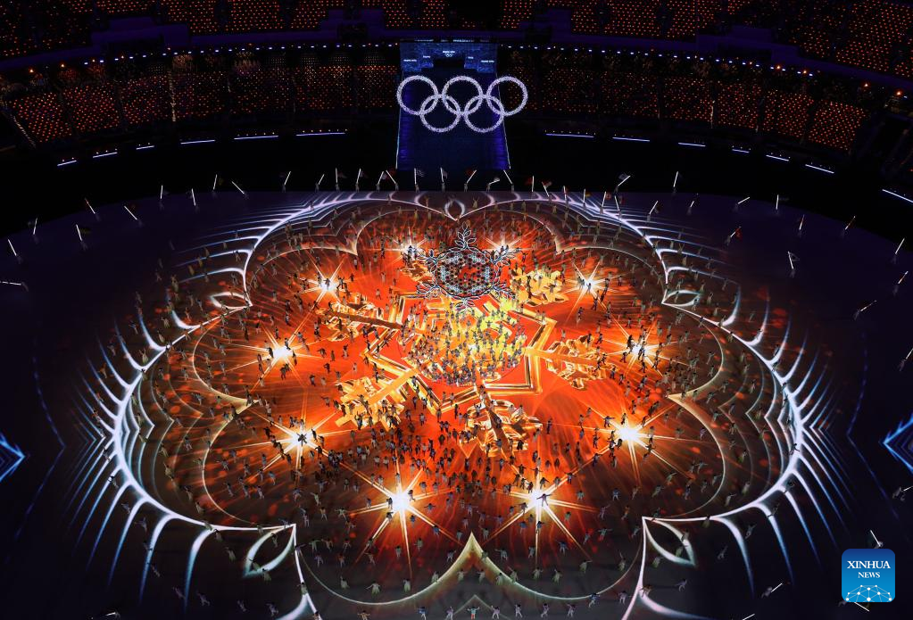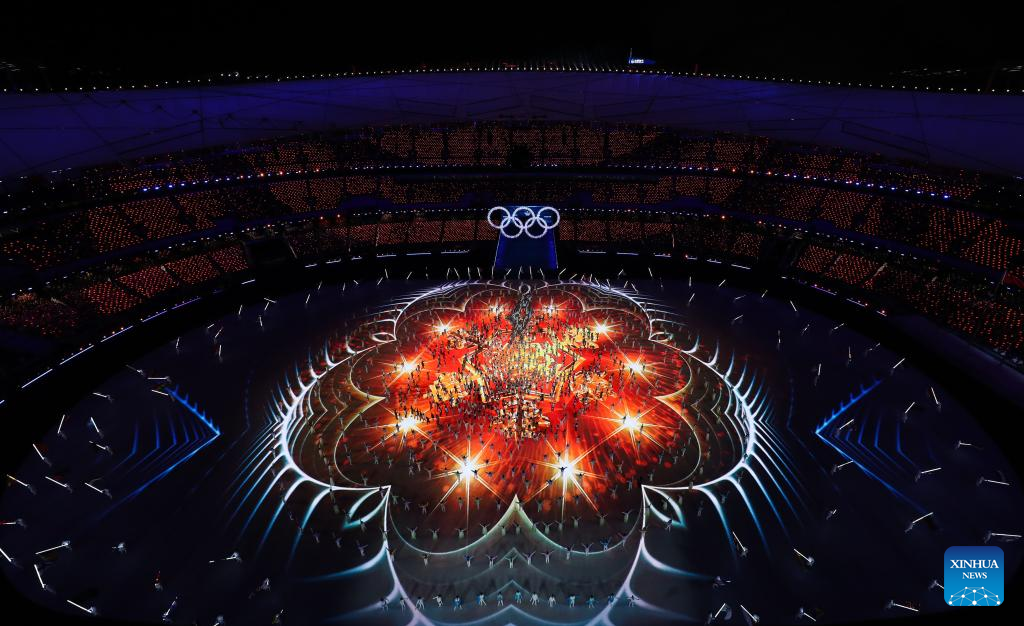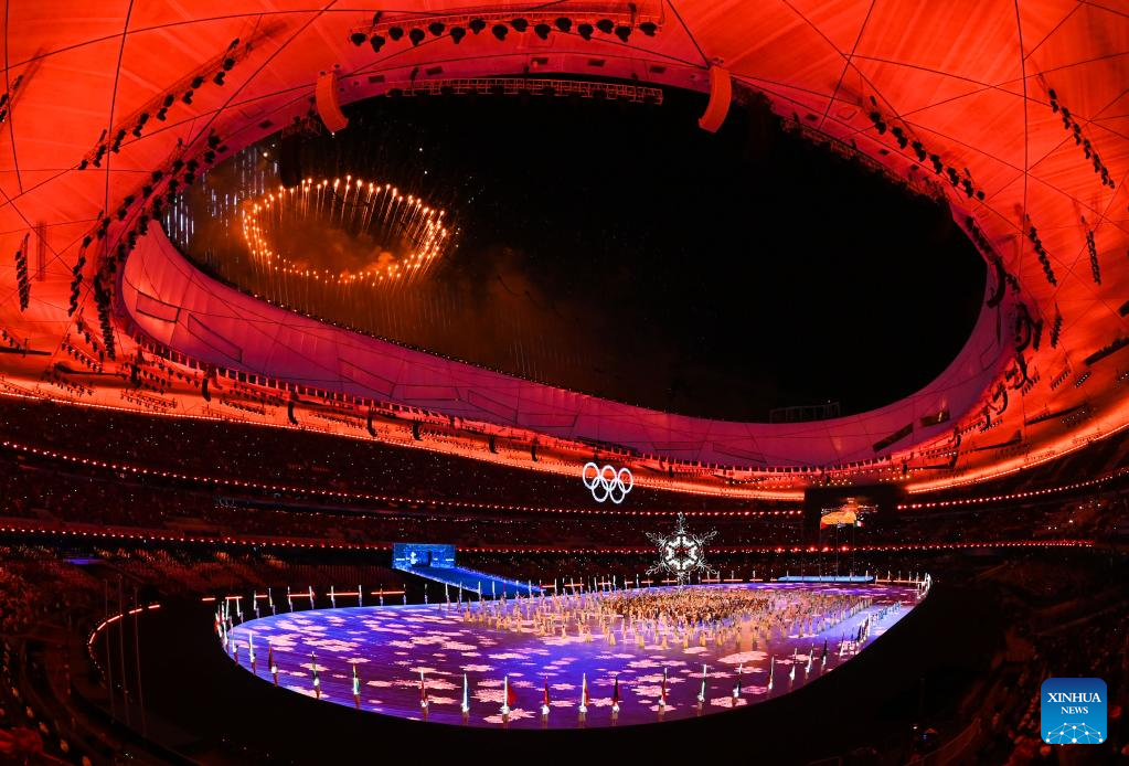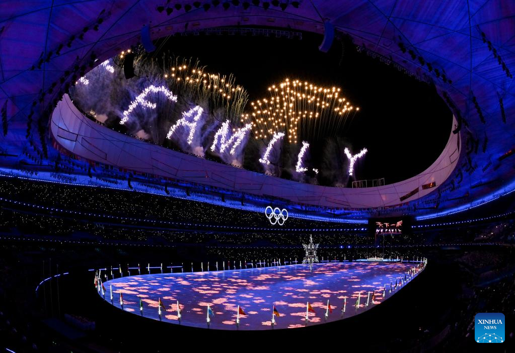 Photo taken on Feb. 20, 2022 shows the closing ceremony of the Beijing 2022 Olympic Winter Games at the National Stadium in Beijing, capital of China. (Xinhua/Li He)