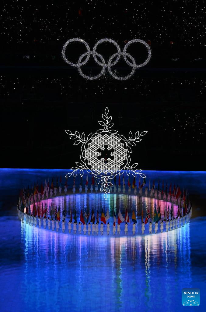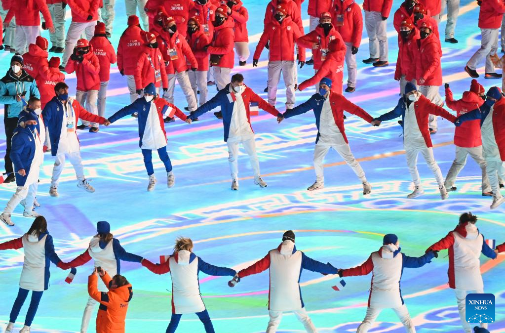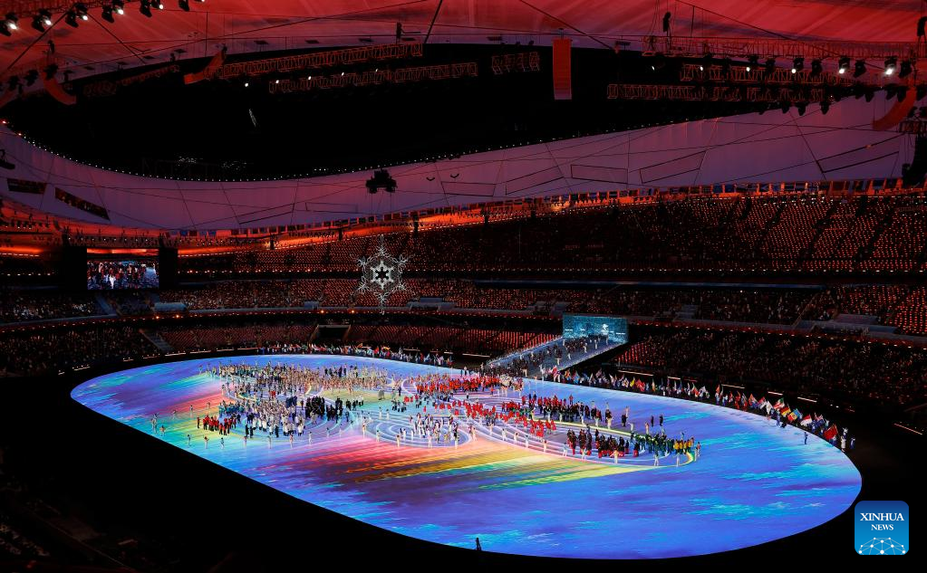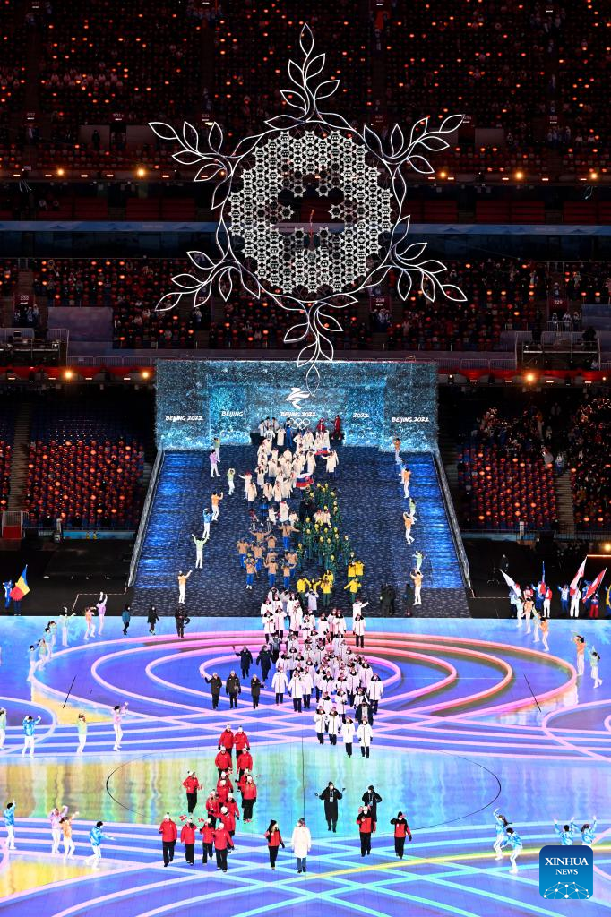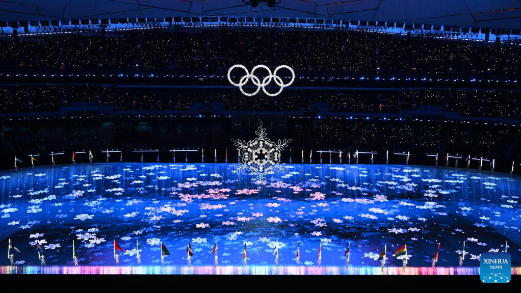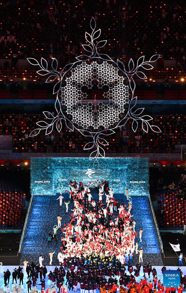 Athletes parade during the closing ceremony of the Beijing 2022 Olympic Winter Games at the National Stadium in Beijing, capital of China, Feb. 20, 2022. (Xinhua/Huang Zongzhi)