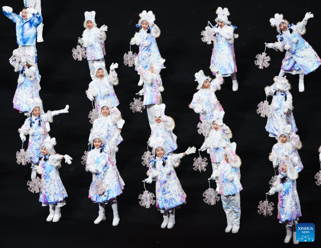 Actors perform during the closing ceremony of the Beijing 2022 Olympic Winter Games at the National Stadium in Beijing, capital of China, Feb. 20, 2022. (Xinhua/Li He)