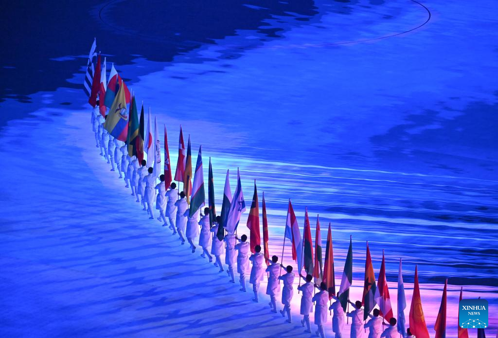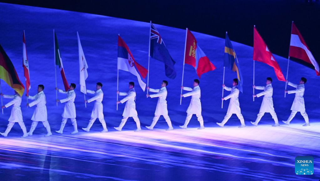 Flag bearers parade during the closing ceremony of the Beijing 2022 Olympic Winter Games at the National Stadium in Beijing, capital of China, Feb. 20, 2022. (Xinhua/Huang Xiaobang)