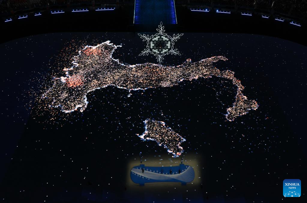 Italian artists perform during the closing ceremony of the Beijing 2022 Olympic Winter Games at the National Stadium in Beijing, capital of China, Feb. 20, 2022. (Xinhua/Cao Can)