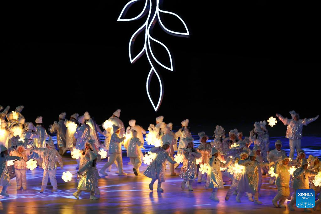 Artists perform during the closing ceremony of the Beijing 2022 Olympic Winter Games at the National Stadium in Beijing, capital of China, Feb. 20, 2022. (Xinhua/Li Ga)