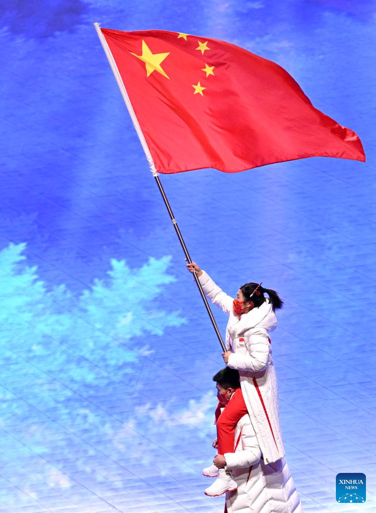 Chinese athlete Wu Dajing parades during the closing ceremony of the Beijing 2022 Olympic Winter Games at the National Stadium in Beijing, capital of China, Feb. 20, 2022. (Xinhua/Cao Can)