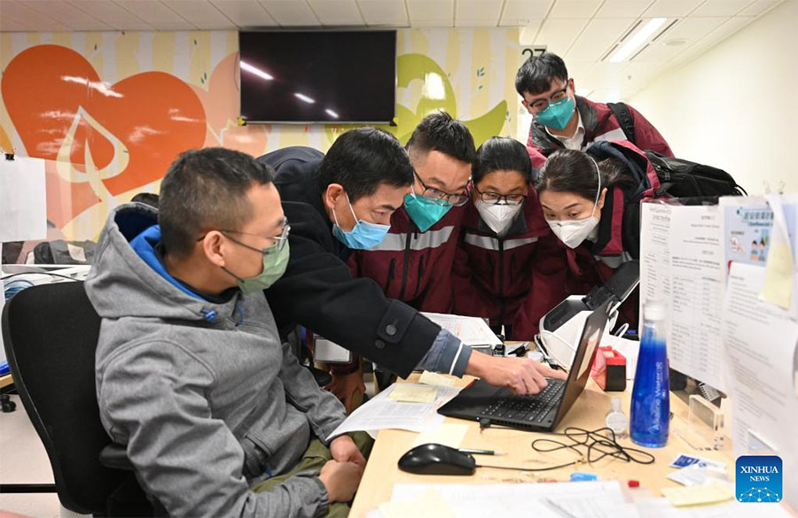HONG KONG, Feb. 20 (Xinhua) -- Two medical expert delegations from the Chinese mainland continued their inspections of Hong Kong's anti-COVID-19 work and patients treatment on Sunday.